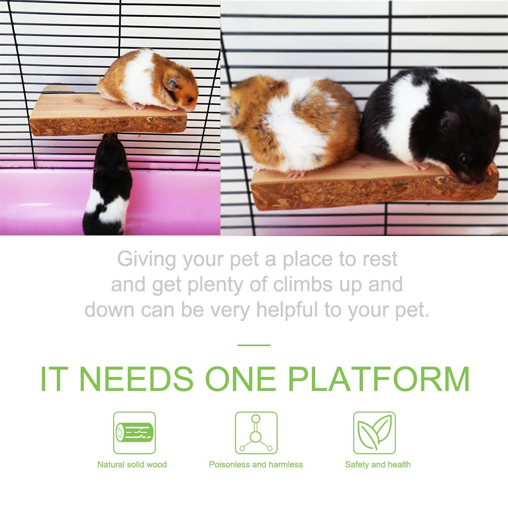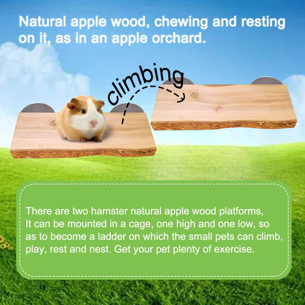 SPEcIFIcATION - Size: length :59 width :24-28 Package includes: 2 x Apple Wooden Standing Ledge Pet wooden platform suitable for a variety of small animals such as hamsters gerbils rats rats parrots and other furry small animals EASY TO INSTALL IN cAgE - The product consists of two fixed platforms which allow installation at different angles The installation is complete without using any other tools can be a high and a low in order to exercise small hamster climbing ability and jumping ability help them exercise keep healthy SAFE AND DURABLE - High quality natural apple wood teeth grinding safety our wooden platform made of 100% natural solid apple wood is one of the best wood for small pets Dried apple wood is hard good teeth grinding effect long service life high cost performance PROVIDE REQUIRED AcTIVITIES - The wooden scaffold platform provides additional movement space for safe chewing Interesting nesting and resting places platforms satisfy the natural instinct of small animals to eat or sleep on the ground A FUN PLAcE TO PLAY - Pet natural wooden shelf platform for your pet to create interesting DIY home and toys You can buy two platforms to connect to a longer platform or you can separate them with different heights to add fun and give your pet a natural home A good gift for your pet Your little friend will love it
