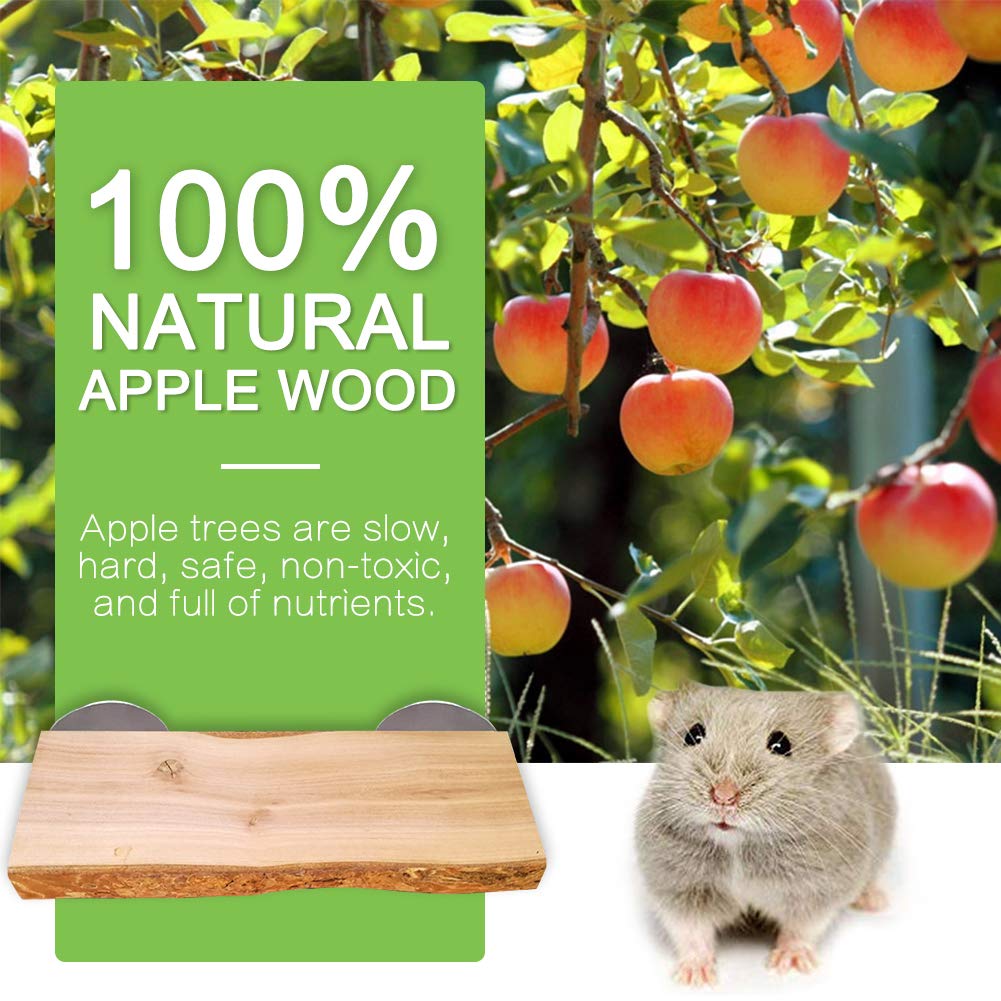 Q: Is the apple wood safe for my pets?A: Yes, the wooden platforms are made from 100% natural solid apple wood, which is safe for small pets. The dried apple wood is hard, making it ideal for teeth grinding, and it promotes healthy chewing habits.