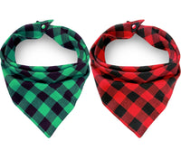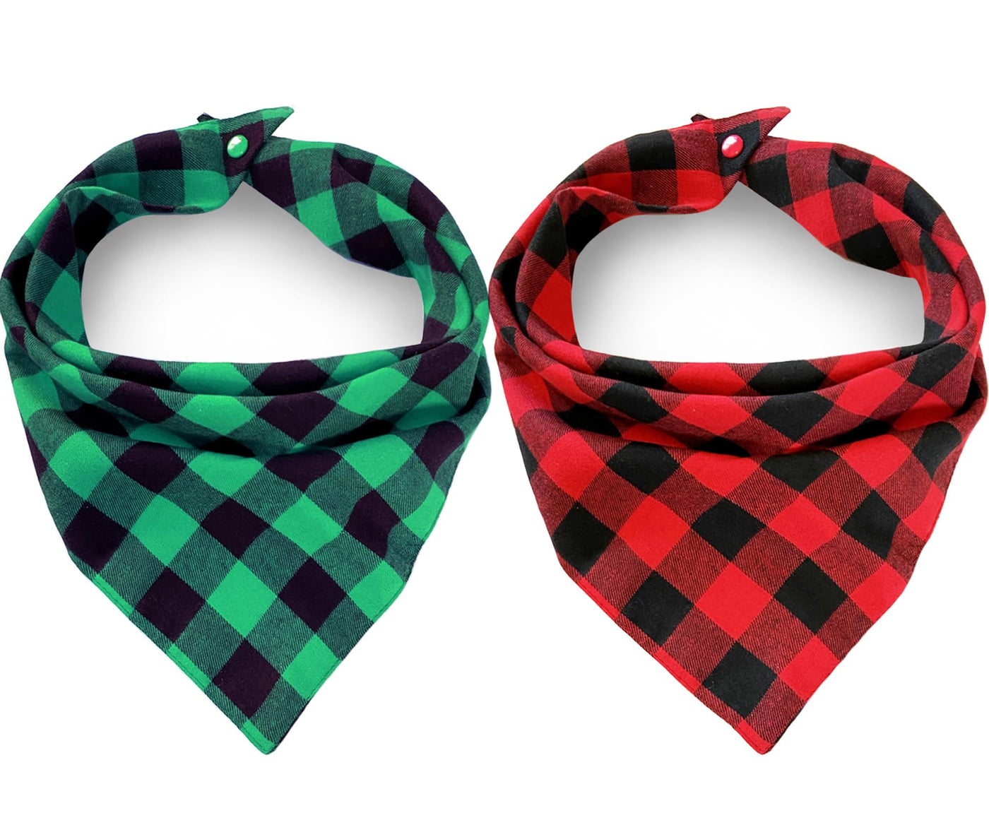 2Pcs Chirstmas Green And Red Plaid Dog Bandanas With Button, Dual Layer Scarf Soft Cotton Triangle Bib Girls And Boys Kerchief A