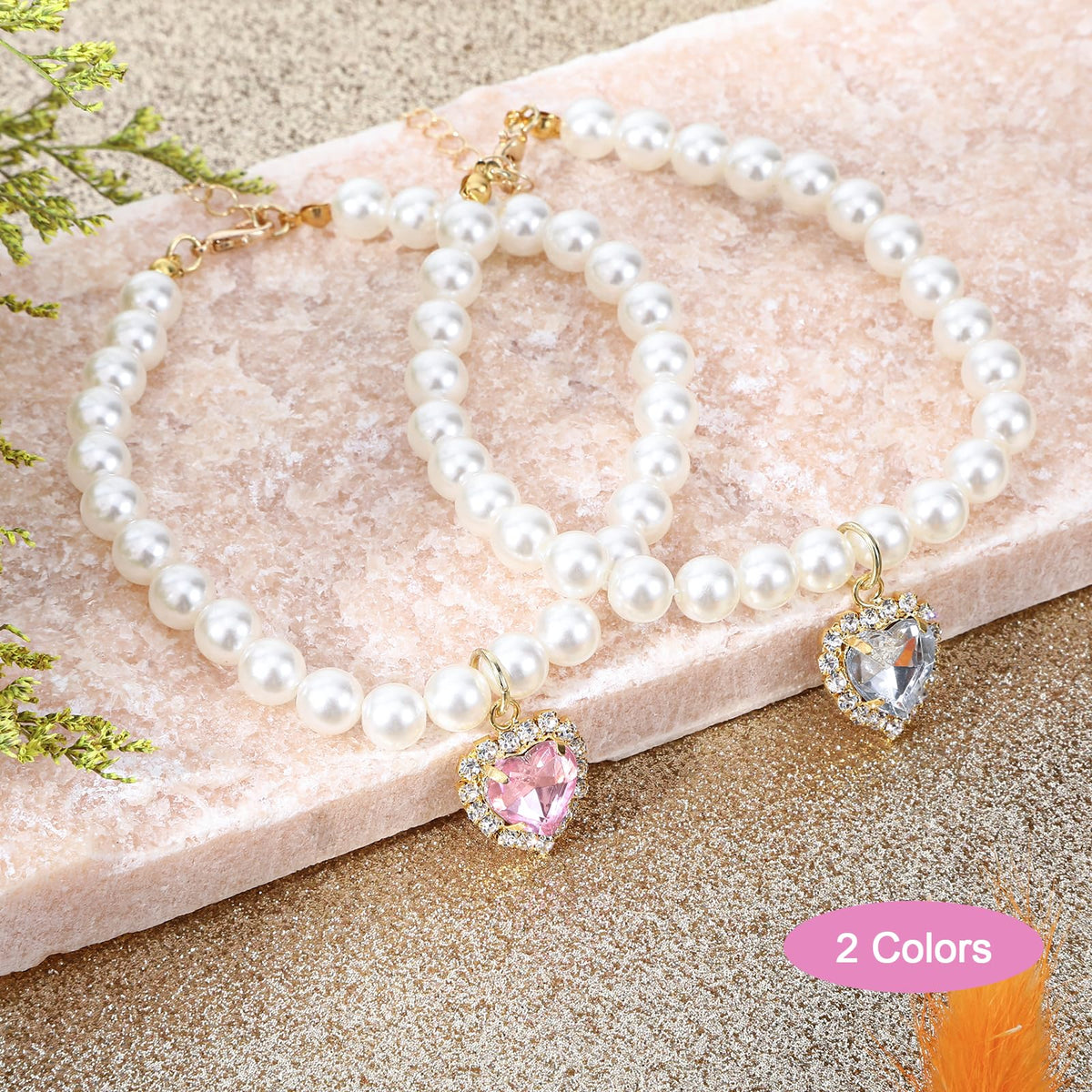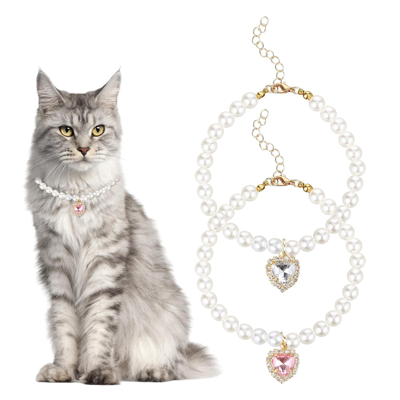 ??This Charming Female Cat Collar Set Will Add Glamor To Your Cat'S Look!?? Two Elegant Designs - A Pink Heart And A White Heart Pendant Adorned With Sparkling Rhinestones - These Two Girl Cat Collars Are The Ultimate Accessory For Stylish Pets. Product Specifications Material: Imitation Pearl, Rhinestones, Alloy Length: 20+5 Cm, Adjustable Design: Pink And White Heart Pendant With White Imitation Pearl Chain Color: Pink And White Package Includes: One Pink Cat Collar &Amp; One White Cat Collar Best For These Cat Collars Are Perfect For Special Occasions Such As Pet Birthdays, Weddings, Photographs Taken And Holiday Parties. The Cat Chain Collar Also Makes A Thoughtful Gift For Cat Owners Who Love To Pamper Their Pets With Fashionable Accessories. ??Turn Everyday Moments Into Unforgettable Memories By Wearing These Dazzling Puppy Collars For Small Puppies!??