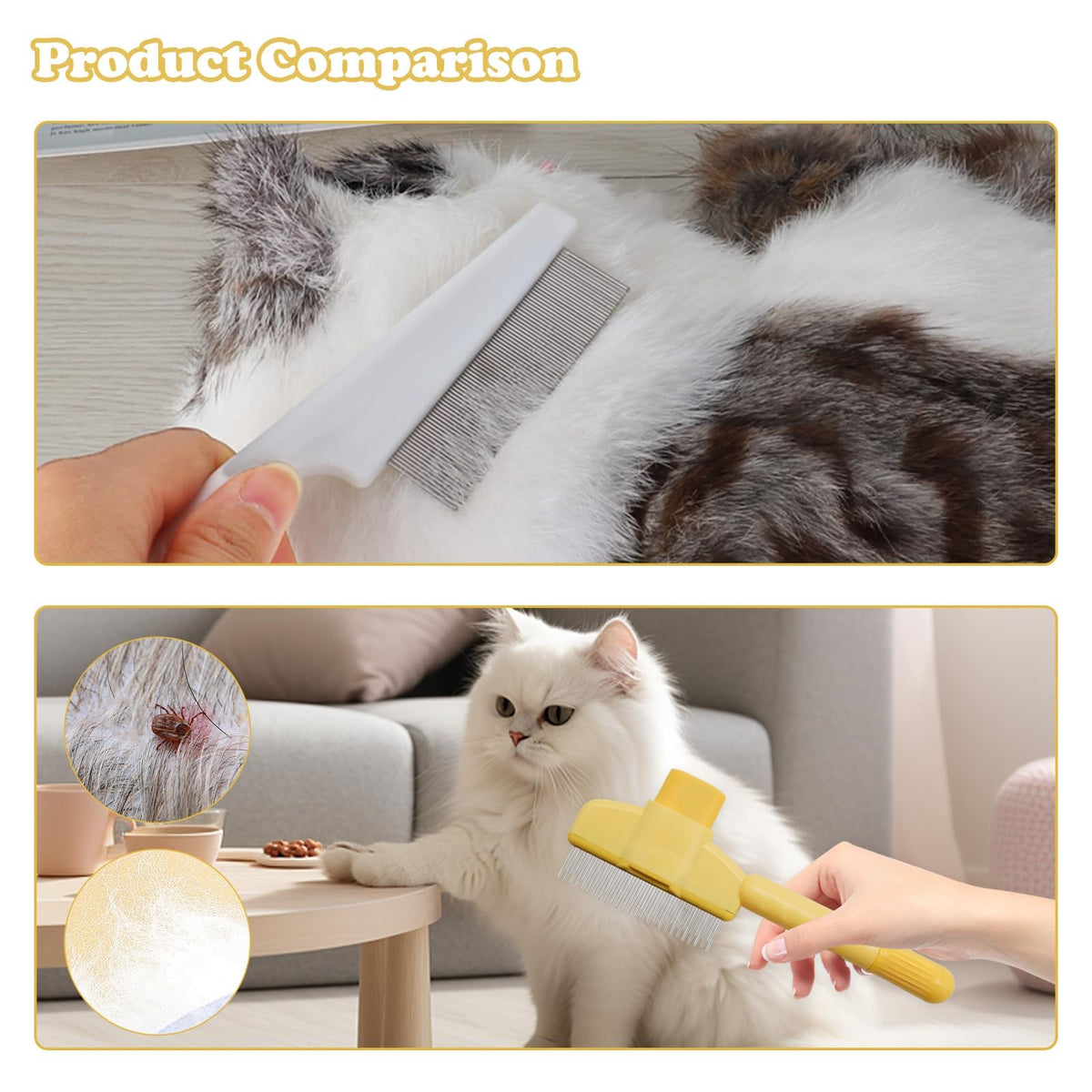 ≪B≫Features:≪/B≫≪Br≫----This Cat Comb Is Made Of Professional Craftsmanship And Quality Abs Materials. The Product Is Not Easy To Damage And Could Be Used For A Long Time.≪Br≫----This Flea Comb For Cats Is Different From Regular Combs. It Can Not Only Easily Comb Out Fleas And Hair, Keep Pet Hair Neat, But Also Comes With A One-Touch Cleaning Button. ≪Br≫----This Metal Comb For Dogs Has A Wide Range Of Application Scenarios. It Is Suitable For Dogs/Cats/Rabbits With Short, Medium, Long, Coarse, Fine Or Curly Hair, Making Your Pet Fall In Love With Combing And Keeping Your Pet Clean And Healthy.≪Br≫≪Br≫≪B≫Specifications:≪/B≫≪Br≫Material: Abs≪Br≫Color: As Pictures Shown≪Br≫Size: As Pictures Shown≪Br≫≪Br≫≪B≫Package Includes:≪/B≫≪Br≫2 X Cat Combs≪Br≫≪Br≫
