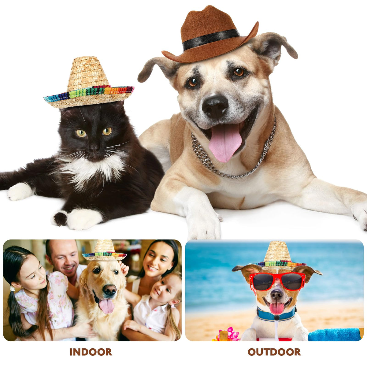 2Pcs Pet Dog Cat Hat Dog Straw Hat- Puppy Summer Sunhat With Adjustable String Pet Hawaii Tropical Mexican Party Headwear