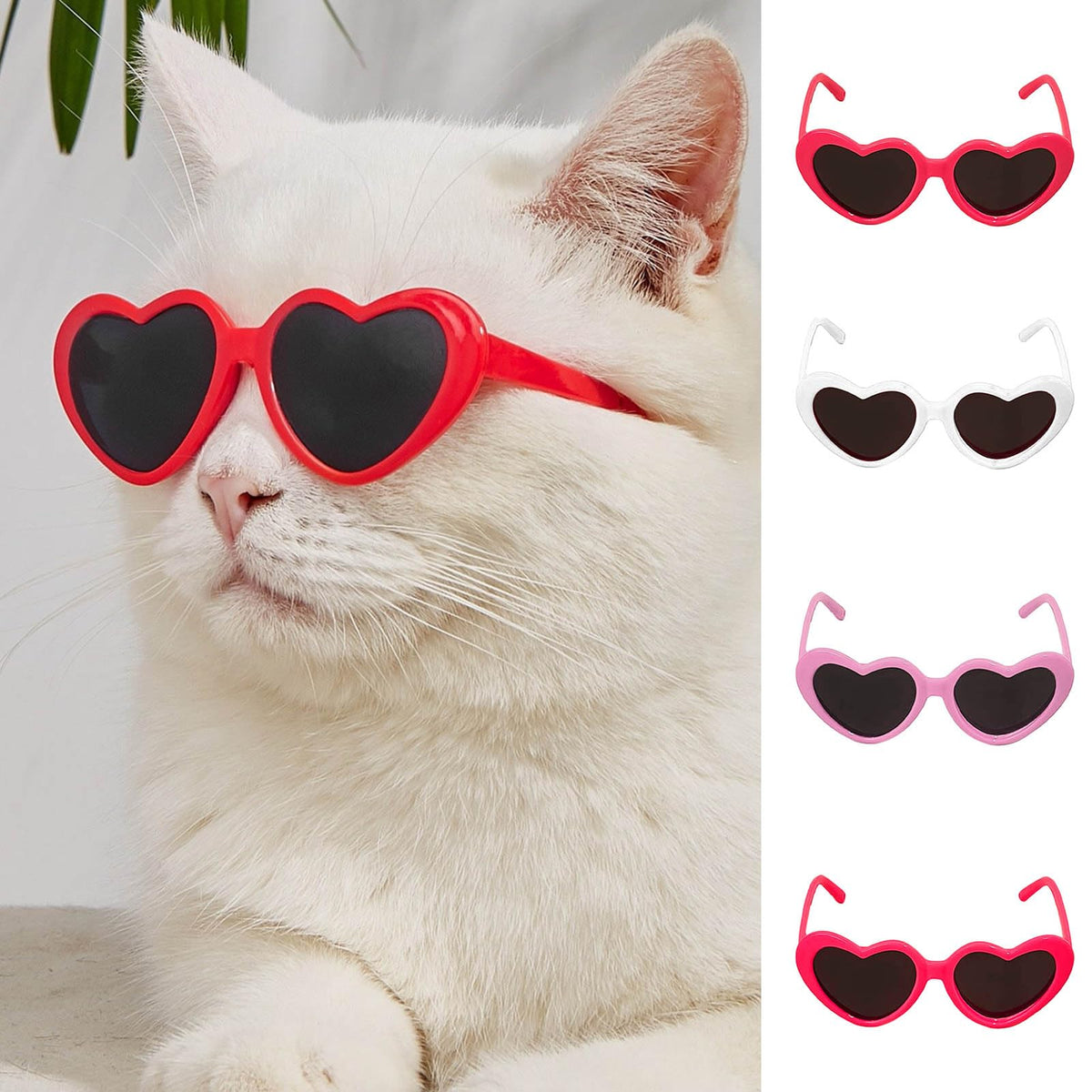 2Pcs Pink Heart-Shaped Pet Sunglasses Cute Pet Dog Sunglasses Cat Glasses Heart Sun Flower Glasses For Small Dogs Cat Accessorie