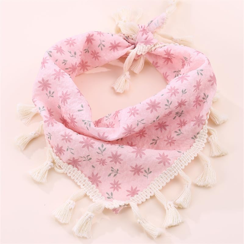 2Pcs Spring Summer Dog Bandanas Daisy Flower Scarfs Adjustable Puppy Bandana Triangle Washable Bibs Handkerchief For Small Mediu