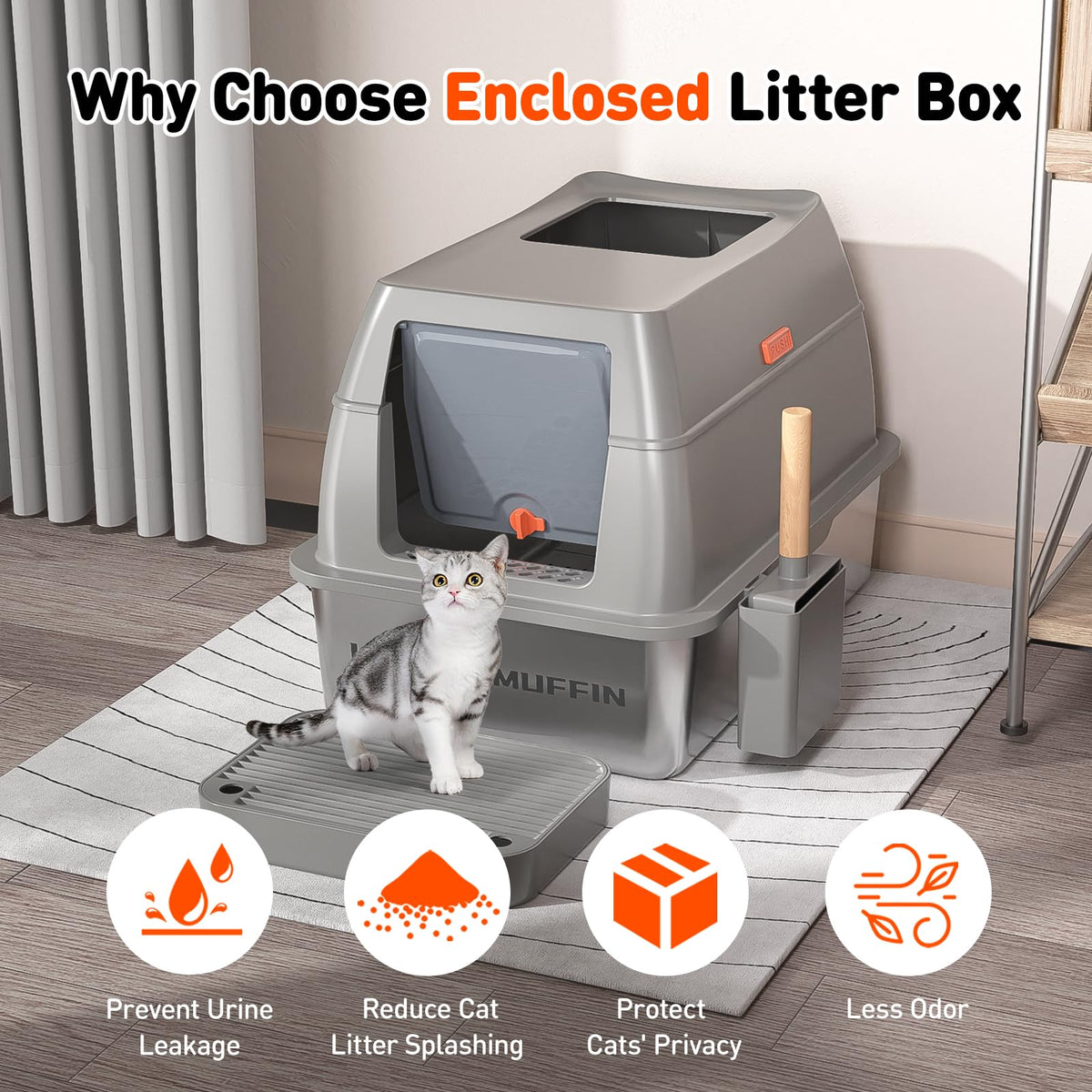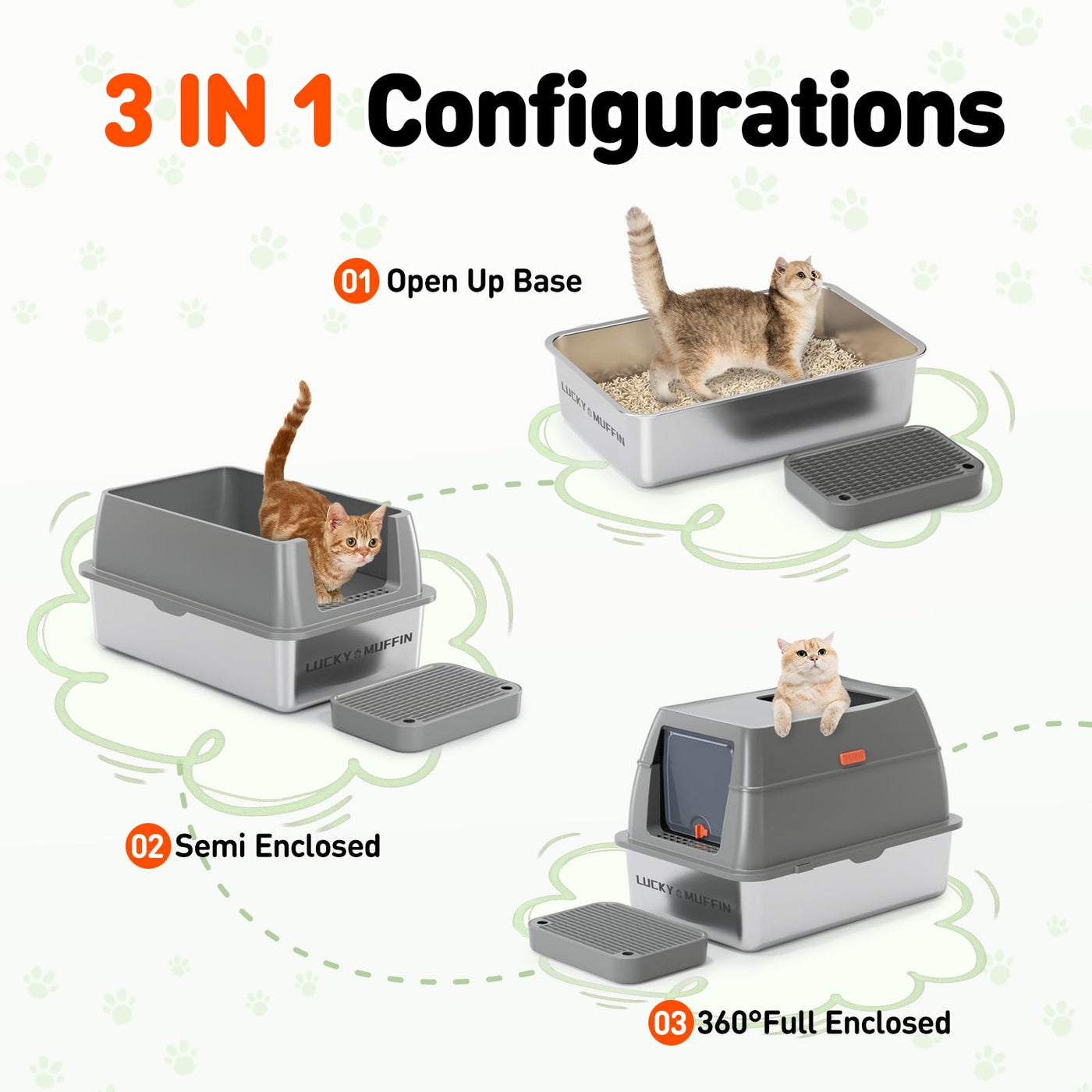 3 In 1 Premium Stainless Steel Cat Litter Box With Removable Lid, Enclosed Xl Extra Large High-Sided Metal Box For Big Kitty Wit