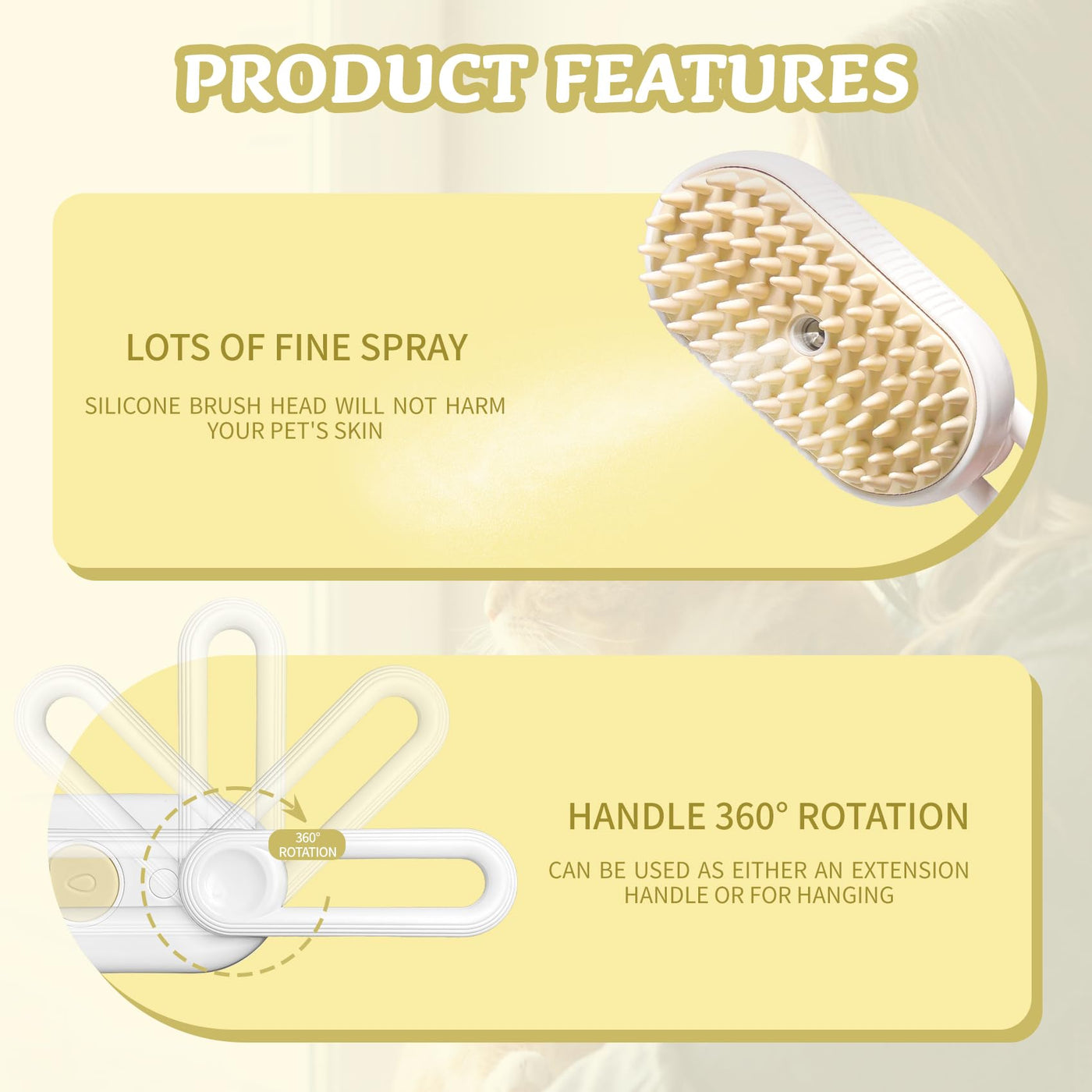 Keep Your Home Clean & Hair-Free: With Our Cat Steam Brush, You Can Easily Tackle Shedding And Keep Your Home Free From Pesky Cat Hair. No More Constant Vacuuming Or Finding Cat Hair Everywhere! Multifunctional Application: Our Innovative 3-In-1 Cat Hair Brush With Steamer Not Only Removes Loose Hair But Also Acts As A Cleanser Vapor. It Helps To Maintain Your Cat'S Hygiene While Providing A Relaxing And Enjoyable Grooming Experience. Easy To Clean: Cleaning Up After Grooming Sessions Can Be A Hassle, But Not With Our Spray Cat Brush! Its Design Allows For Easy Removal Of Collected Hair, Making Clean-Up A Breeze And Saving You Time And Effort.