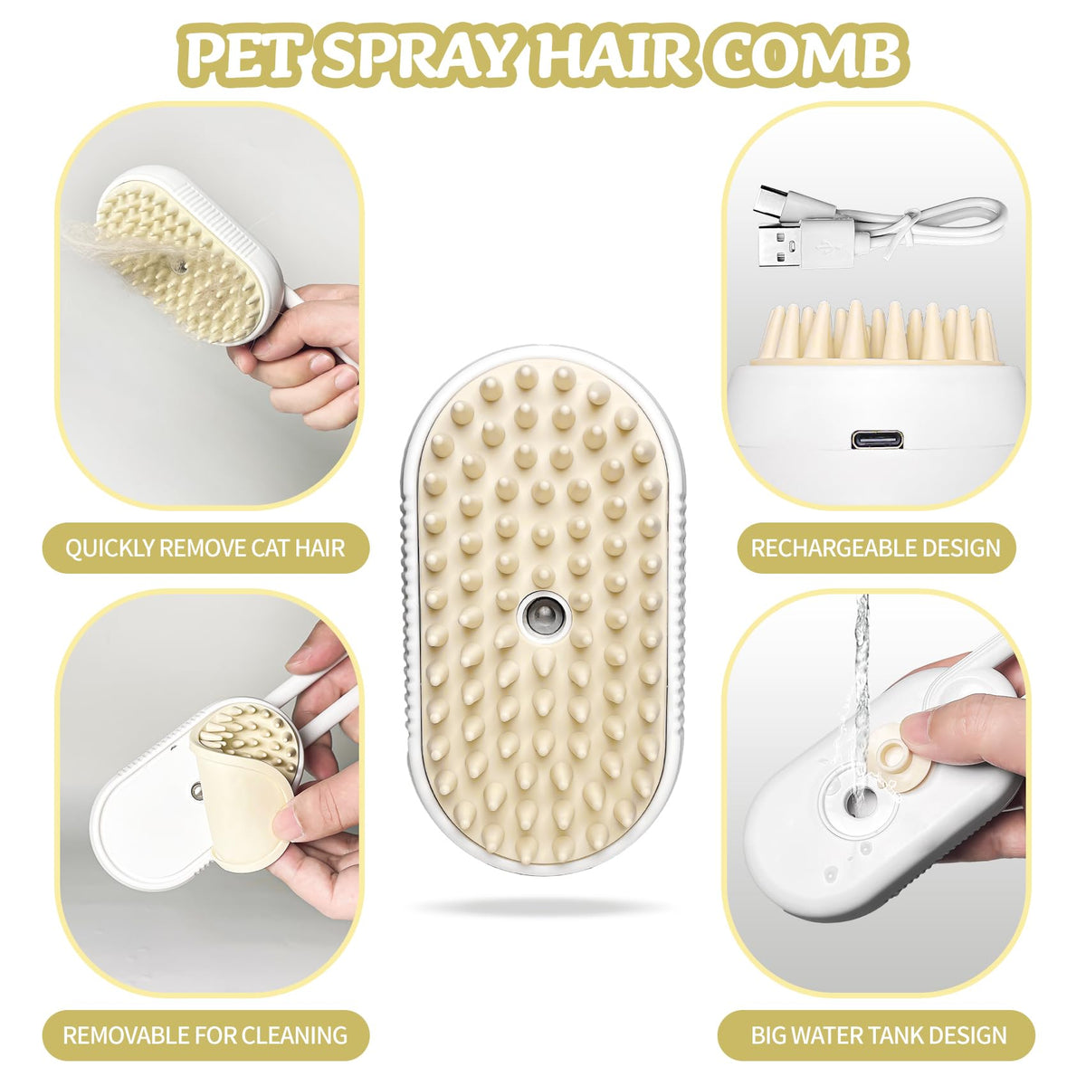 3-In-1 Rechargeable Steam Brush For Cats & Dogs - Anti-Static Spray Pet Grooming Brush With Warm Mist Massage, Hair Shedding Con