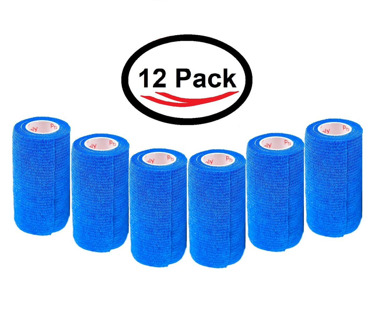 3 Inch Vet Wrap Tape Bulk (Blue) (Pack of 12) Self Adhesive Adherent Adhering Flex Bandage Grip Roll for Dog Cat Pet Horse