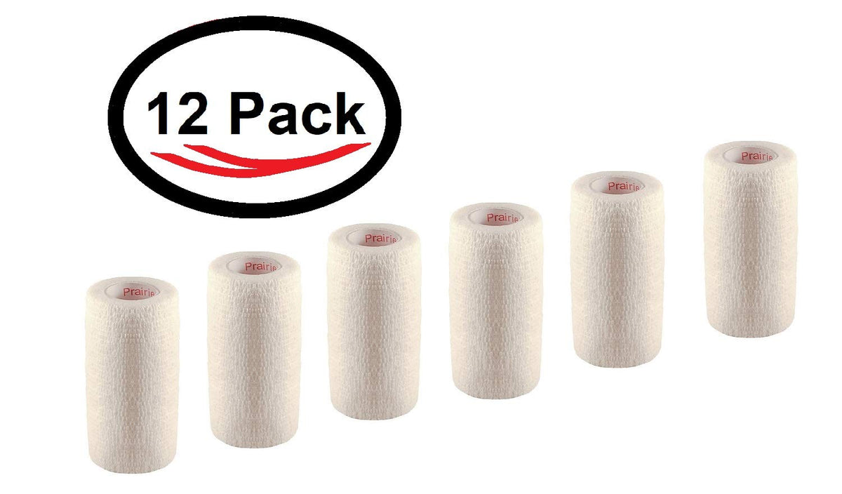 Prairie Horse Supply Vet Wrap Tape bandages are known around the world as the preferred self-adherent bandaging tape for dogs, cats, small and large pets, and horses. Each roll is individually Wrapped. Our self stick Vet Tape is a must have first aid supply, stock up with some fun new colors. Our vetWrap is easy to cut or tear, and a wonderful all-around medical Wrap. These elastic bandages are strong and provide excellent support. The bandage applies pressure to inhibit bleeding. It is also flexible enough and when used properly with padding or gauze it will not cut off circulation. Veterinarians find one of the most exciting features is that the vet Wrap tape sticks to itself so no clips or fasteners are needed. 2, 3 or 4 inches Wide x 5 yards Long when stretched. (6 Rolls, 12 Rolls, 18 Rolls, or 24 Rolls) - Color choices: Black, Blue, Brown, Camo, Fuchsia, Hunter Green, Neon Green, Neon Pink, Orange, Purple, Red, Teal, White, Yellow, Paw Prints, Smile and Heart Patterns or Assorted Colors
