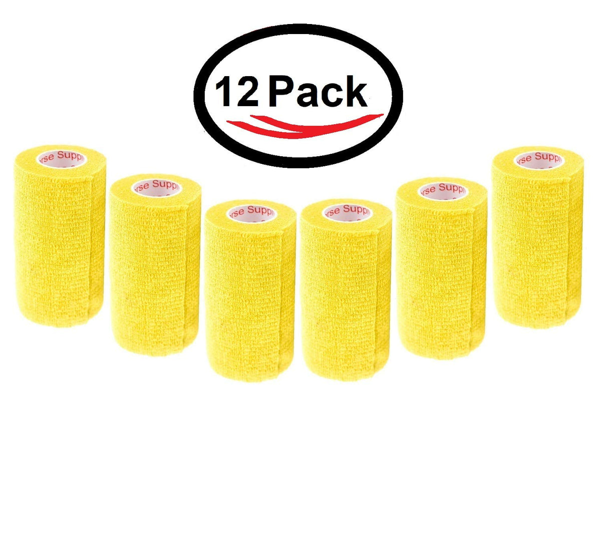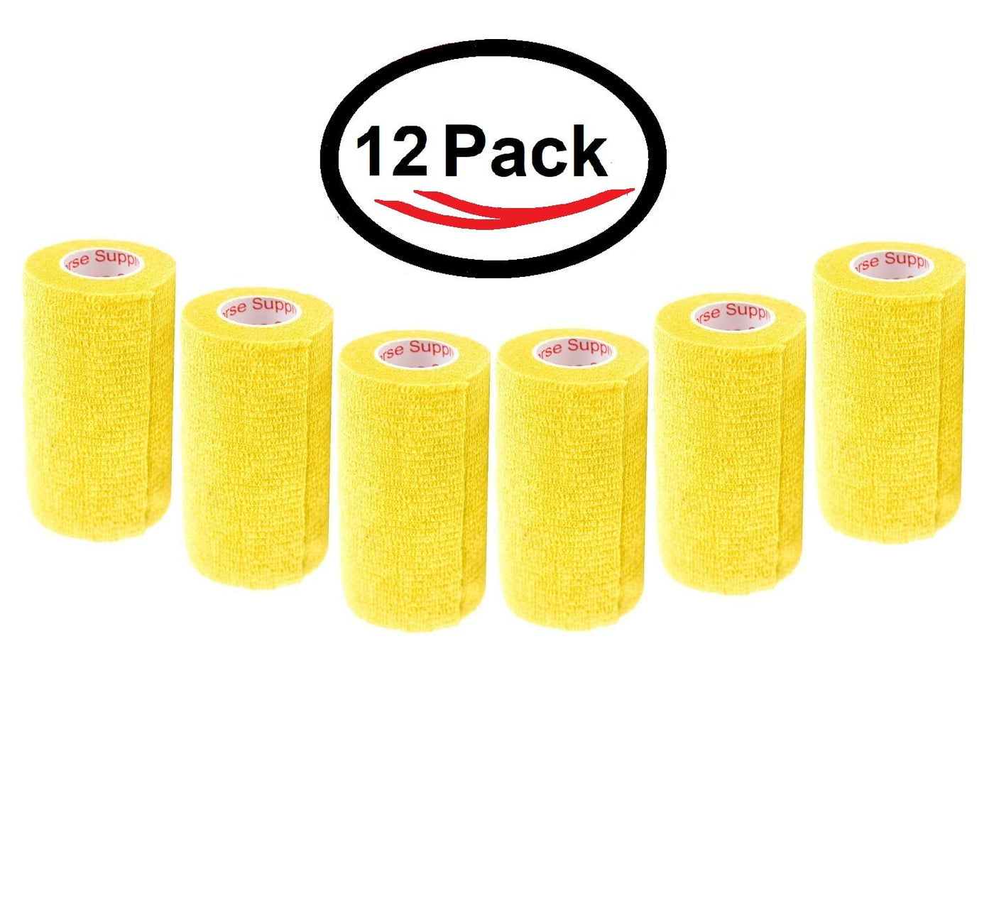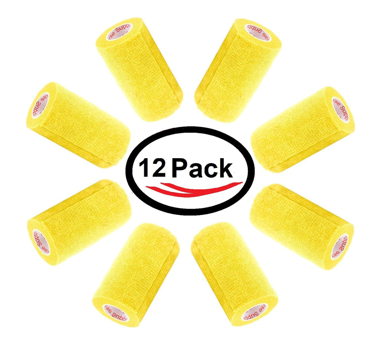 3 Inch Vet Wrap Tape Bulk (Yellow) (Pack of 12) Self Adhesive Adherent Adhering Flex Bandage Grip Roll for Dog Cat Pet Horse