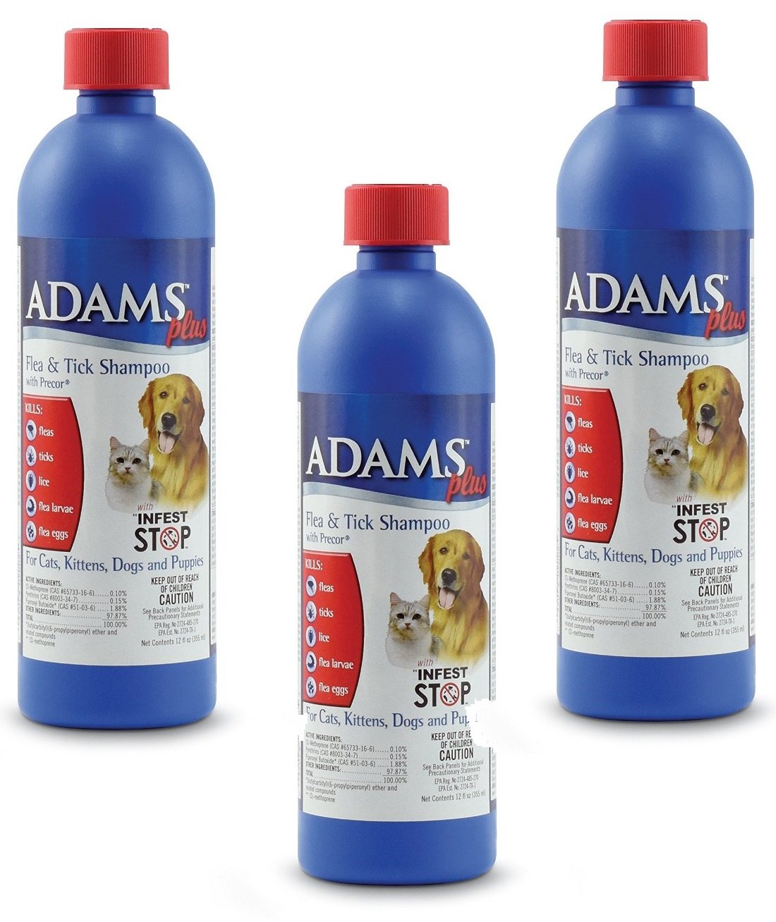 (3 Pack) Adams Plus Flea and Tick Shampoo with Precor for Dogs and Cats - 12-Ounce Bottles
