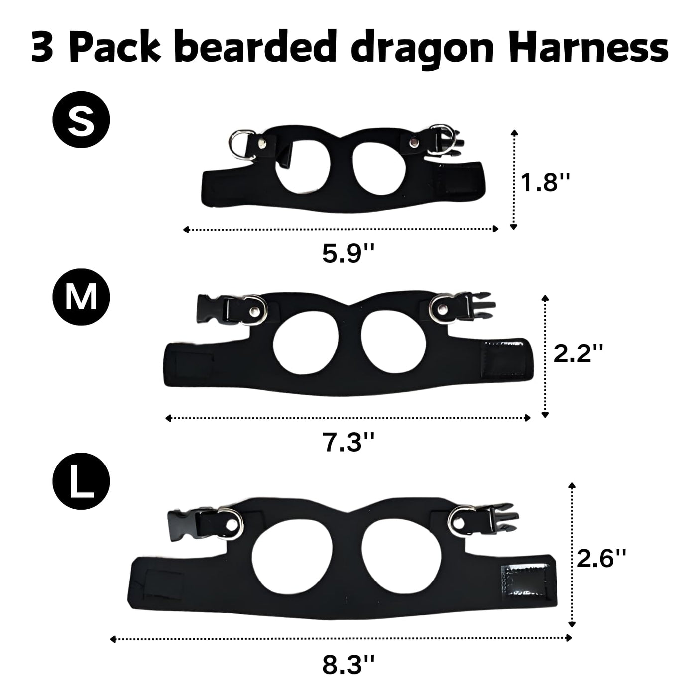 3 Pack Bearded Dragon Harness And Leash Set - Adjustable Soft Leather Lizard Harness With Retractable Leash Small Animal Tractio