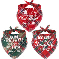 3 Pack Christmas Dog Bandanas With Tassels Edges Merry Christmas Printing Stylish Plaid Christmas Bandana Funny Xmas Scarf Bibs