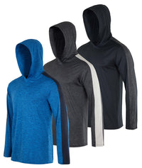 3 Pack: Menas Quick Dry Fit Moisture Wicking Long Sleeve Active Athletic Hoodie Performance Hooded T Shirt Workout Running Fitne