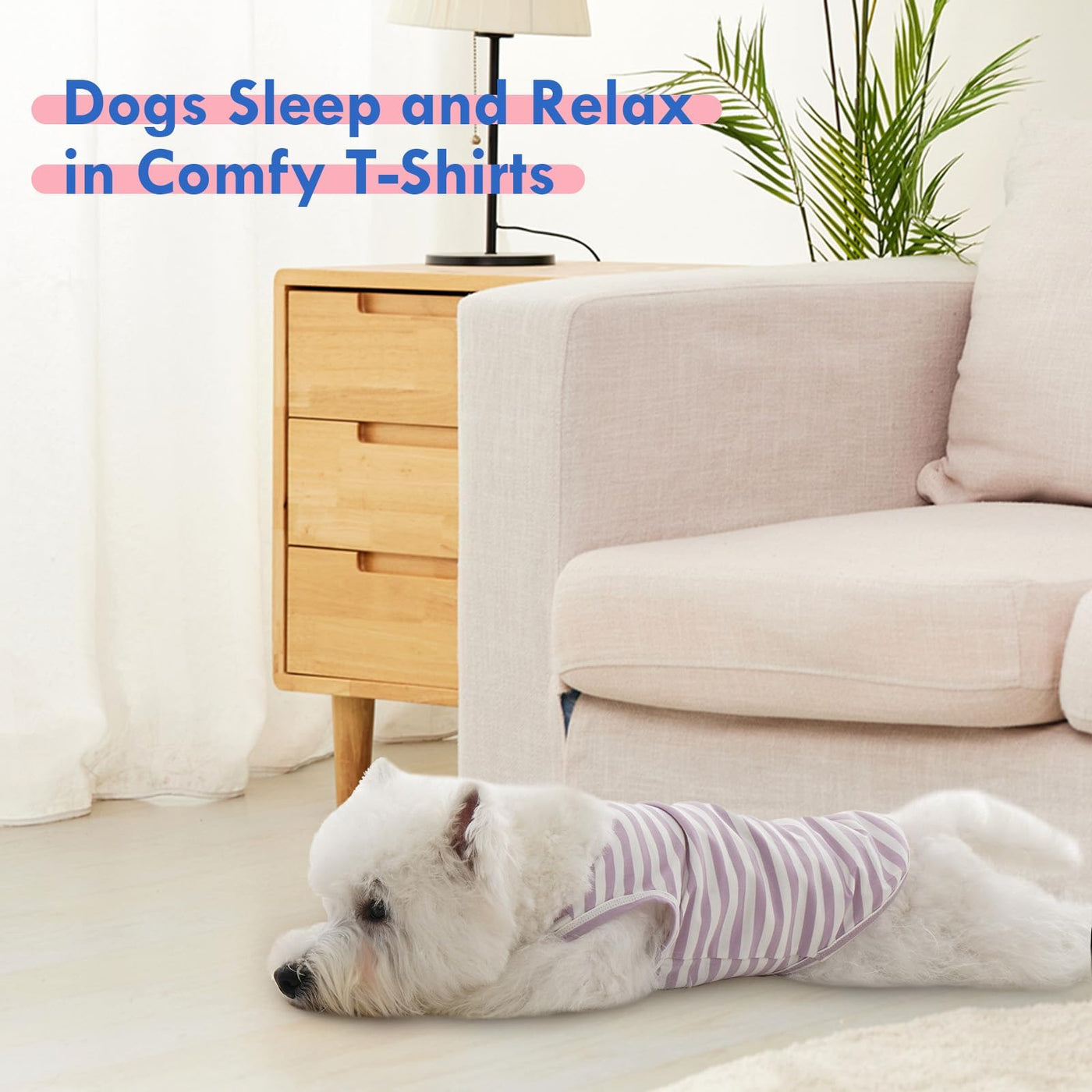 3 Pack Purple Striped Dog T-Shirt For Small Dogs,Sleeveless Shirts Set For Spring,Summer Sun Insect Protection,Lightweight For P