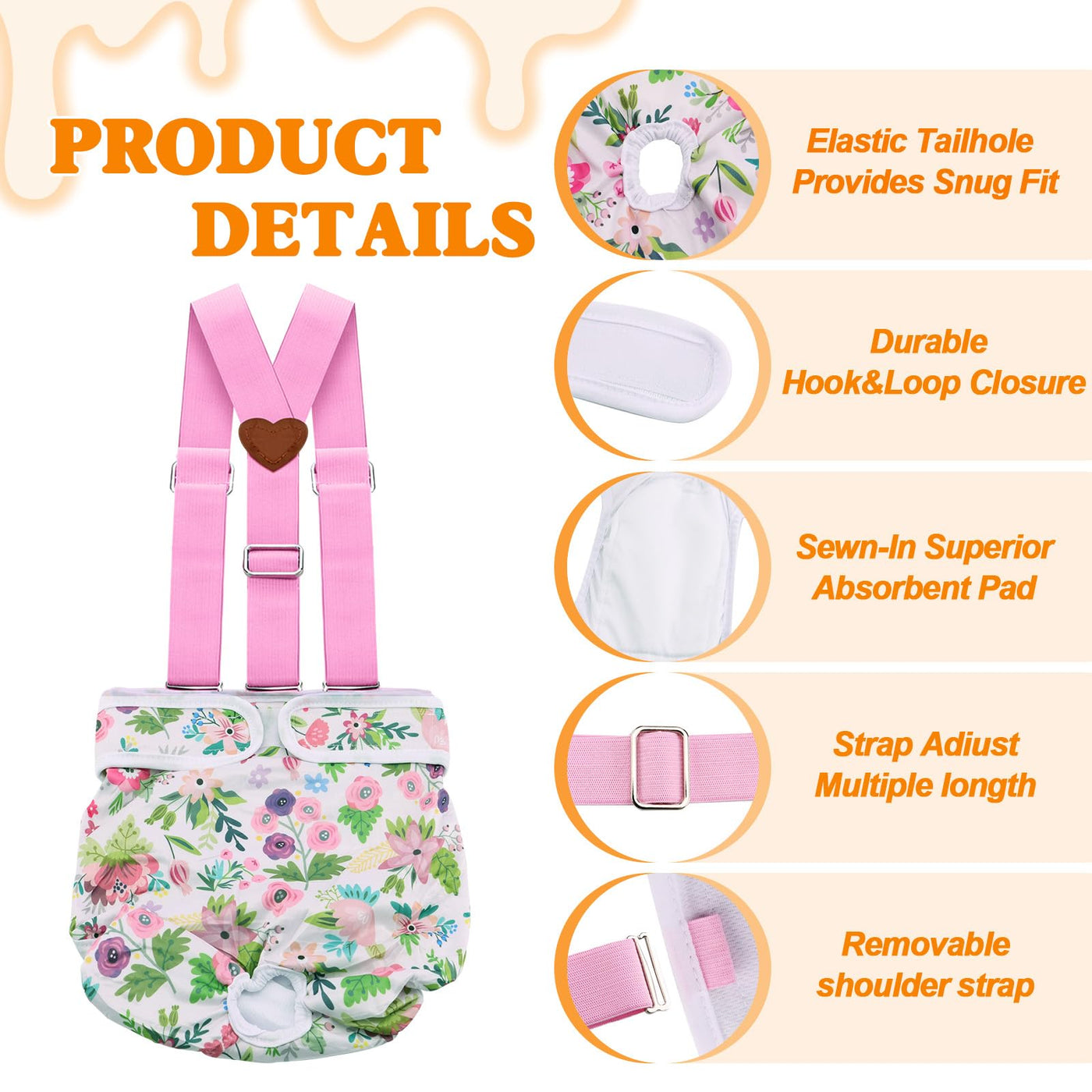 3 Pack Washable Female Dog Diaper,Reusable Fixed Doggie Diapers Super Absorbent Leakproof For Small Medium Large Dog In Heat Cyc