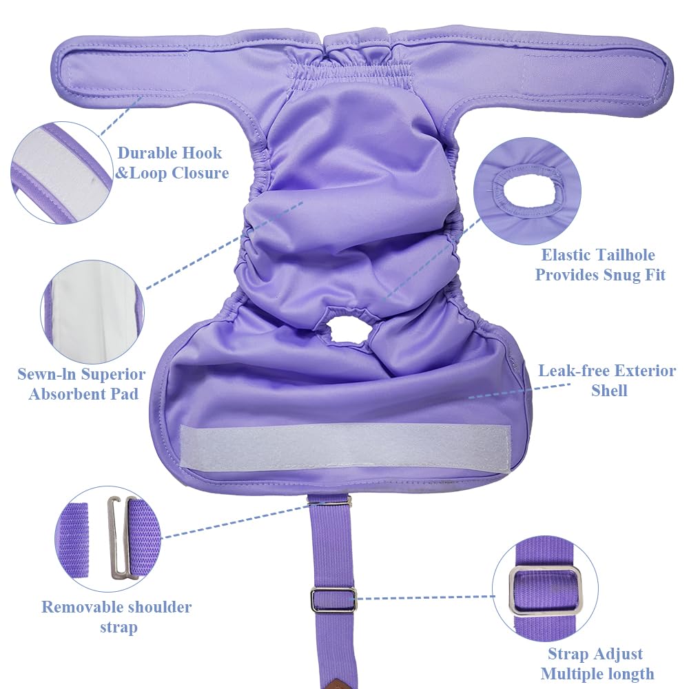 3 Pack Washable Female Dog Diaper with Suspender,Reusable Fixed Doggie Diapers Super Absorbent Leakproof for Dog in Heat Cycle-M