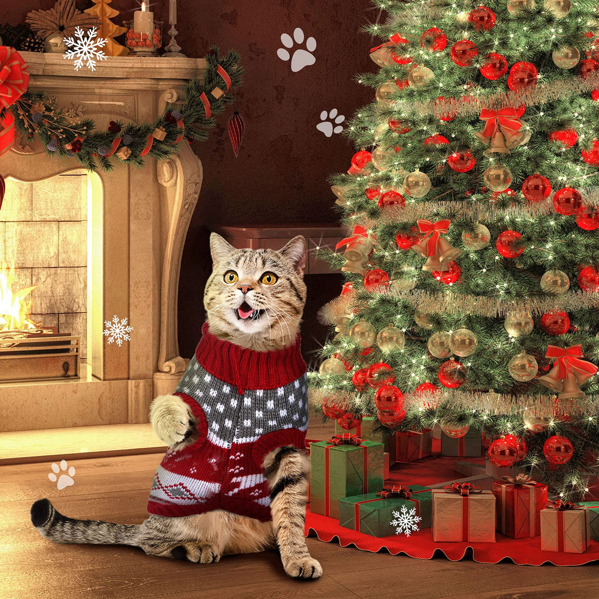 Q: Can I use this dog sweater for cats as well?A: Yes, the Christmas pet sweater is designed for both small dogs and cats, making it a versatile choice for your pets during the festive season.