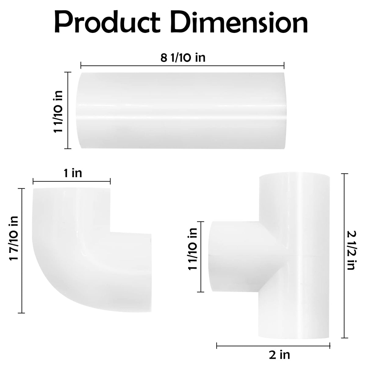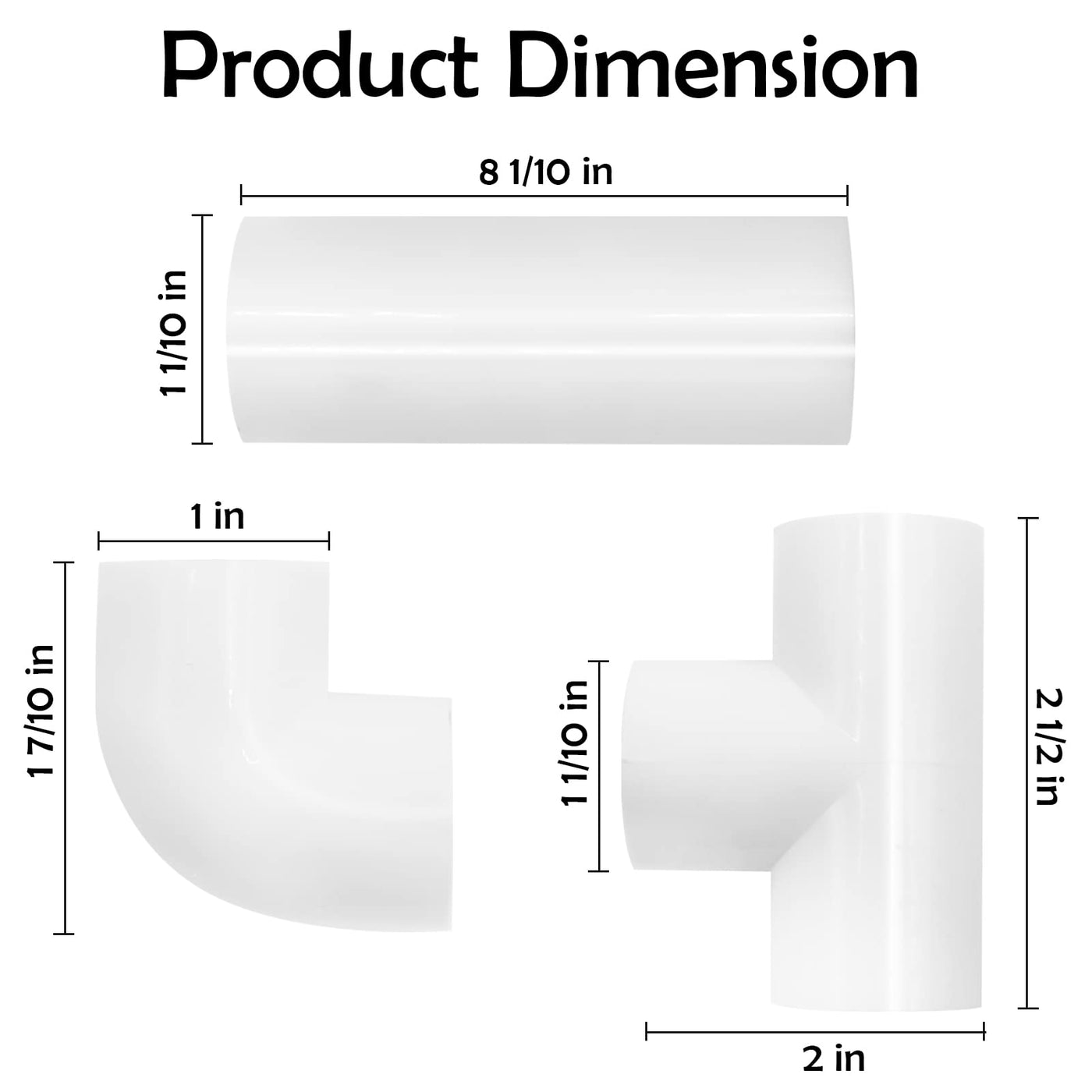 Q: What are the dimensions of the ZALALOVA Connector Pipes?A: The 'T' shape connector is 2 1/2 inches in length and 1 1/10 inches in diameter. The bent shape connector measures 1 7/10 inches in length, while the middle connector is 8 1/10 inches long with a diameter of 1 1/10 inches.