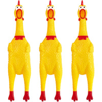 Specifications: Material:High-quality rubber. Package Including:3 pcs large squeeze rubber chickens. Size:The size of the squawking chicken toy is 12 in / 30 cm. Color:Yellow. Wide Range of Applications: Squawking chicken toys are perfect for pets to play with,especially dogs.They will have several hours of happy time. Squeeze rubber chickens have smooth edges and are suitable for people of different ages to play with,so you don't have to worry about hurting your hands. Rubber squeaky chicken toys have a silly and ridiculous appearance,and can even make silly noises.They can be given as gifts to friends and help them relieve stress.