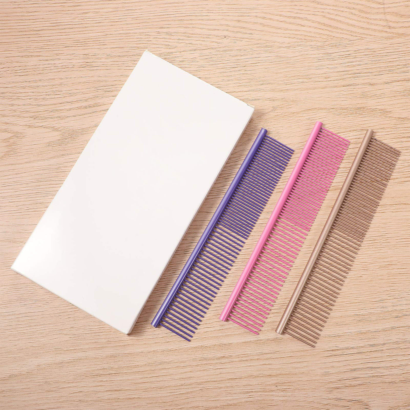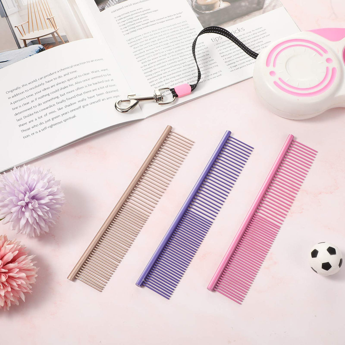 3 Pieces pet steel combs, pet dog cat grooming comb multi-color dog comb with stainless steel teeth for removing tangles and knots for long and short haired dog, 7.5 x 1.3 inch