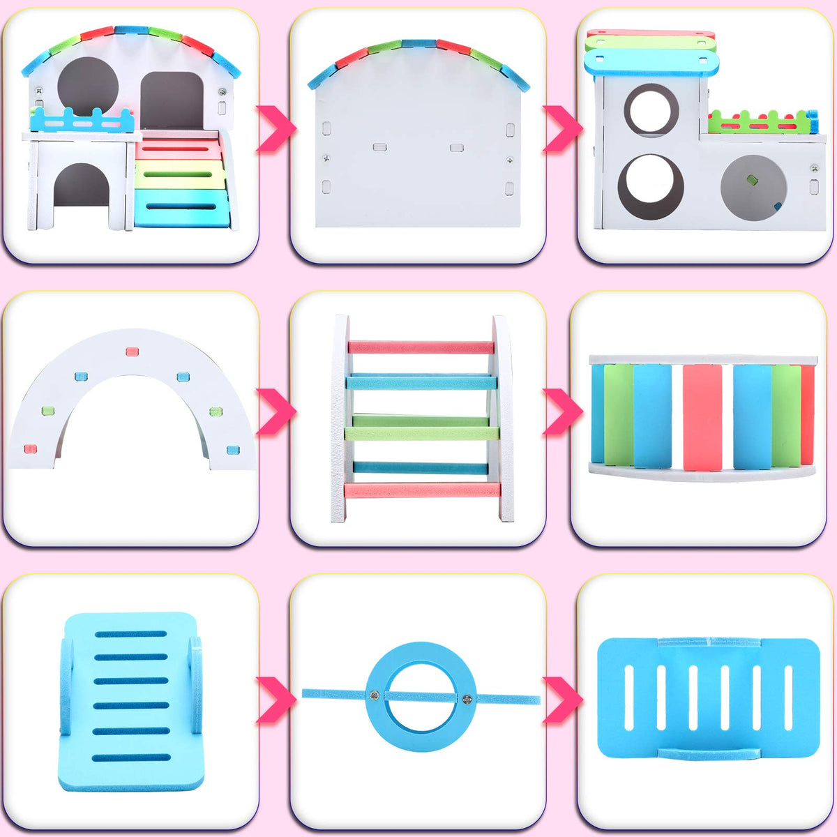 Feature: Nice Gift For Pets: The Hawaiian Villa Is Similar To The Most Real House For Small Animals Like Hamsters, Where It Can Sleep, Play, And Climb. And It Adopts Safety Material, So Small Animals Can Chew On The Board And Grind Their Teeth. Fitness Toys: The Rainbow Bridge Is Designed With A Ladder Shape, Which Is Safe To Climb. It Can Be Applied As A Fitness Equipment To Increase The Fun Of Sports. The Seesaw Allows Small Animals To Play With Their Partners And Increase Interaction. Specification: Color: As Shown In The Picture Material: Pvc Size: Seesaw: 13 X 7 X 6 Cm/ 5.1 X 2.75 X 2.36 Inch Rainbow Bridge: 14 X 7 X 8 Cm/ 5.5 X 2.75 X 3.15 Inch Hawaii Villa Hamster Nest: 14 X 14 X 13 Cm/ 5.5 X 5.5 X 5.1 Inch Package Includes: 1 X Hawaiian Villa-Style Hamster Nest 1 X Seesaw 1 X Rainbow Bridge Note: Manual Measurement, Please Allow Little Size Errors. The Colors Shown On Picture May Be Biased From The True Color, Please Refer To The Real Objects.