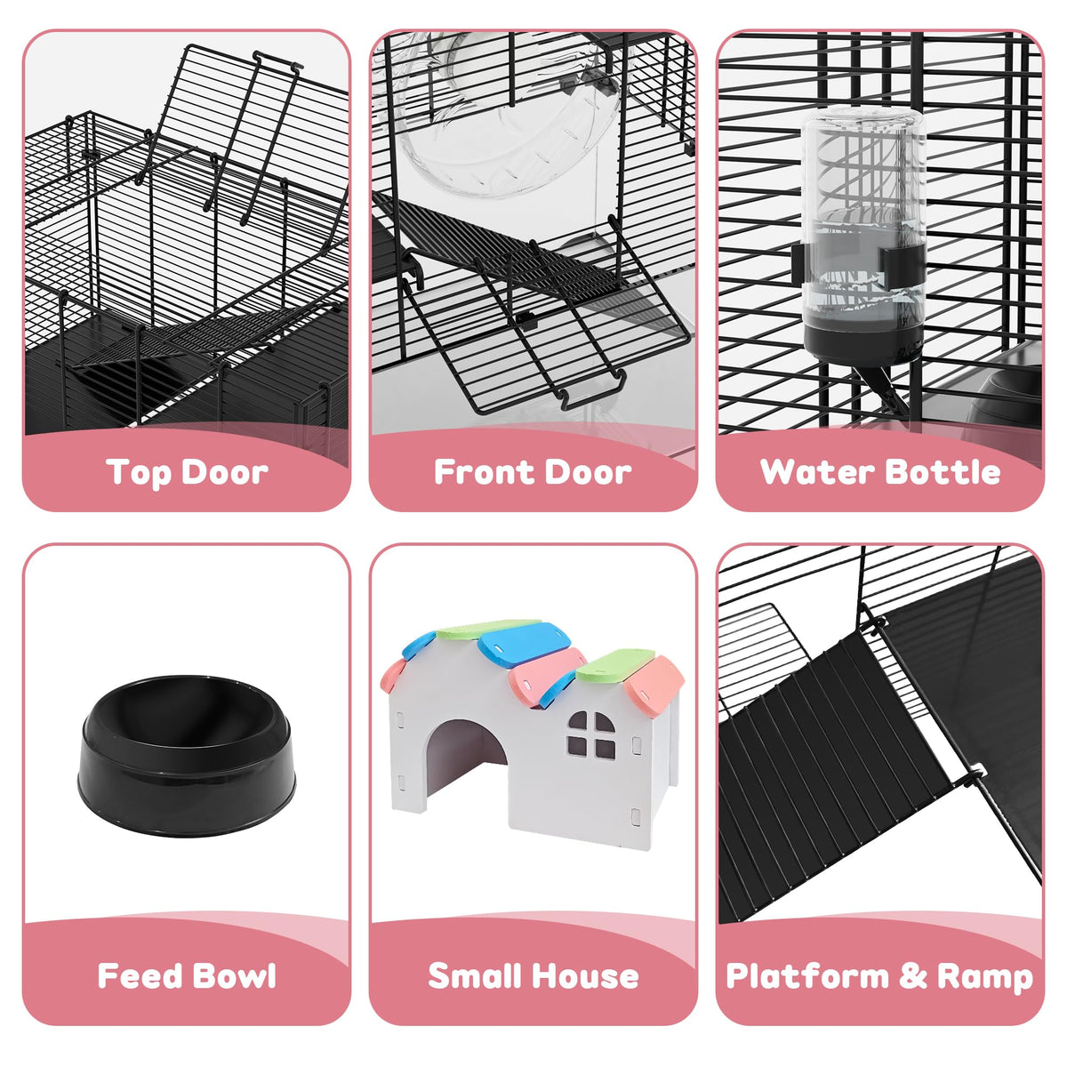 3-Tier Glass Hamster Tank, Large Hamster Cage Habitat With 11Inch Big Running Wheel For Rat, Mouse, Gerbil, Syrian Hamster, 370