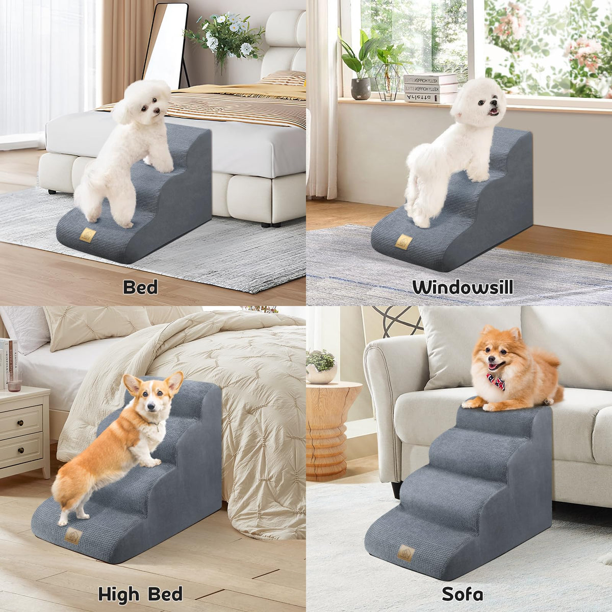 3-Tiers Foam Dog Stairs For High Sofa Bed Couch, High Density Foam Steps Stairs For Indoor,Dog Stairs Ladder Ramp Non Slip For Old Small Dogs Easy Access,60 Lbs Support,Free 3 Pcs Lint Roller Set