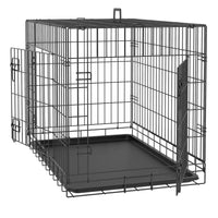 30/36/42 Inches Double Door Dog Crate Folding Metal Wire Dog Kennel Cage With Tray For Small/Medium/Large Dogs Indoor Outdoor Tr