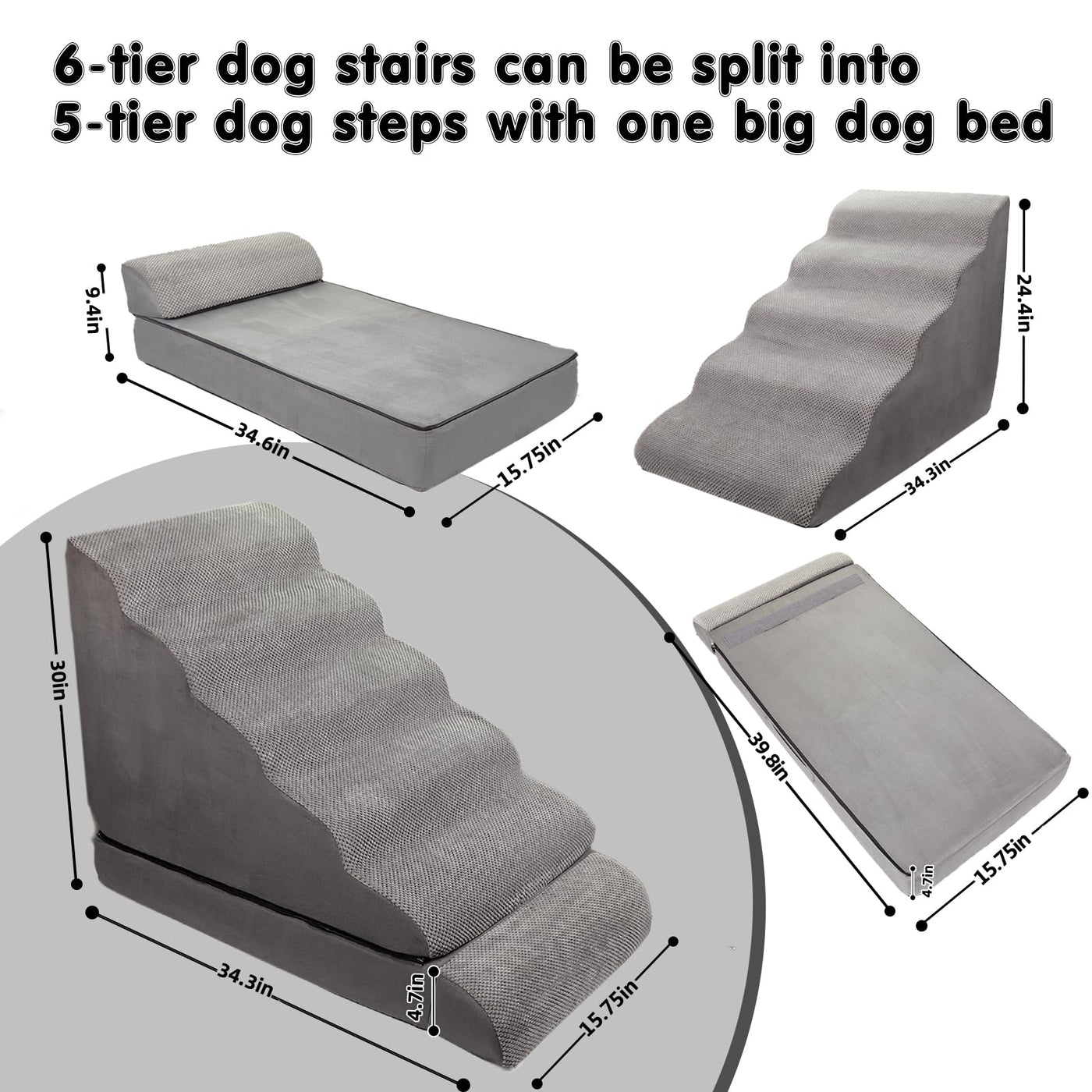30-36 inches Height Foam Dog Stairs & Steps for High Beds Tall, LitaiL 30 inch 6 Steps Pet Stairs/Steps for High Beds Large Dogs