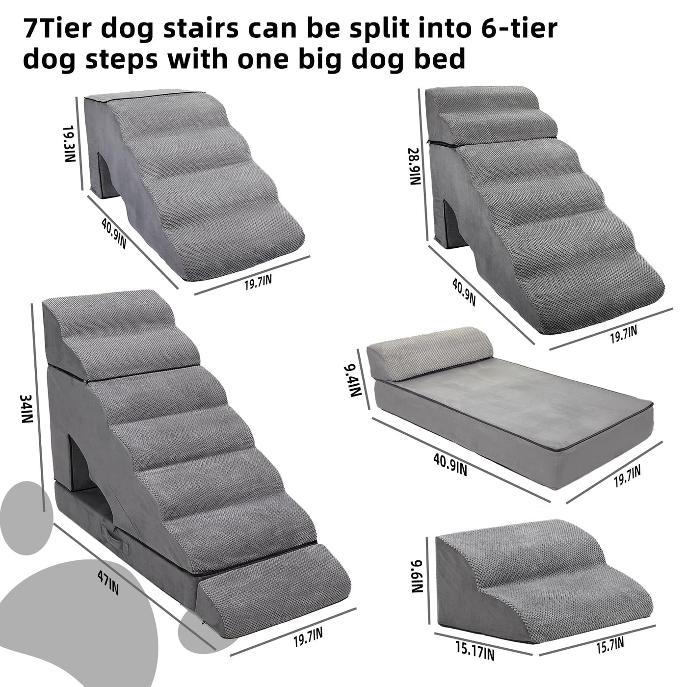 30-36 inches High Dog Stairs & Steps Ramps for High Beds Tall, LitaiL 30 inch 7 Steps Pet Stairs/Steps for High Beds Large Dogs,