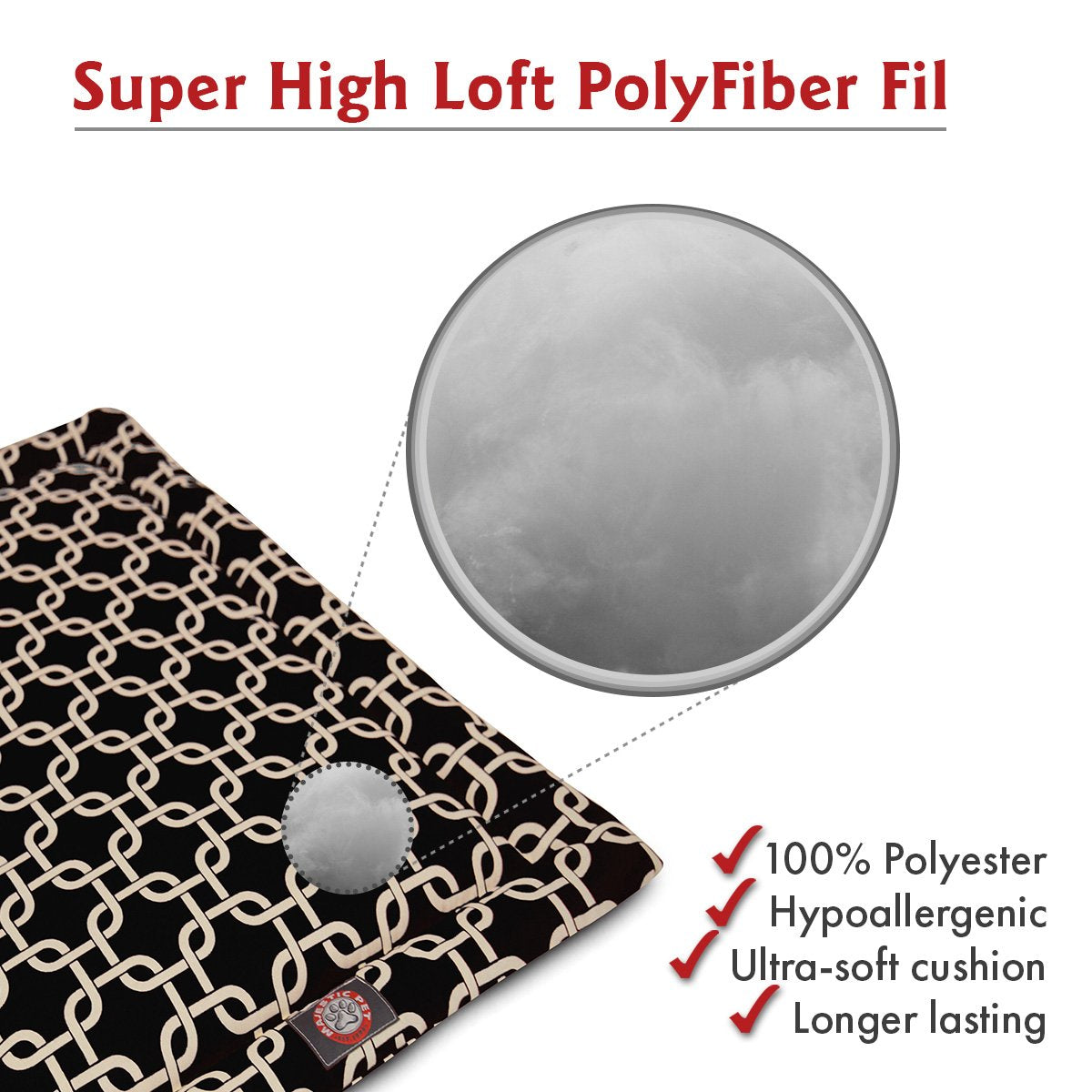 The 30 Inch Links Black Crate Dog Bed Mat By Majestic Pet Products is stuffed with super premium high loft, yet soft polyester batting, which ensures an orthopedic and snug rest anywhere in the house with unbeatable comfort.
