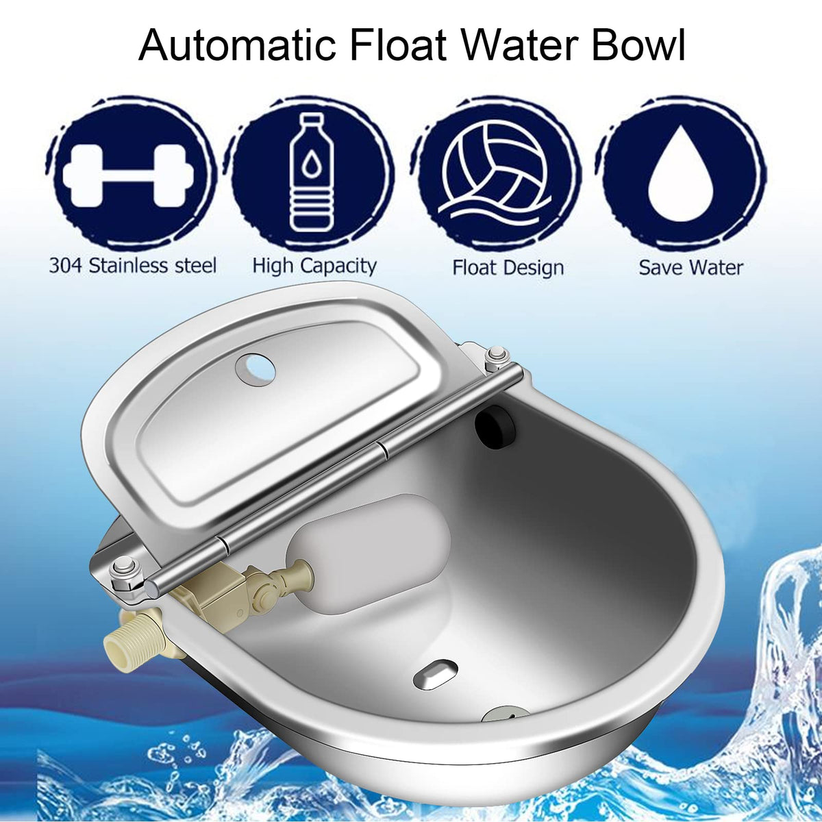 304 Stainless Steel Automatic Waterer Livestock Bowl With Float Valves, (Drain Hole),39 Inch Water Hose,Quick Connector, Livestock Horse Waterer Dispenser For Dogs,Pig,Horse,Calf,Goat, Water Trough