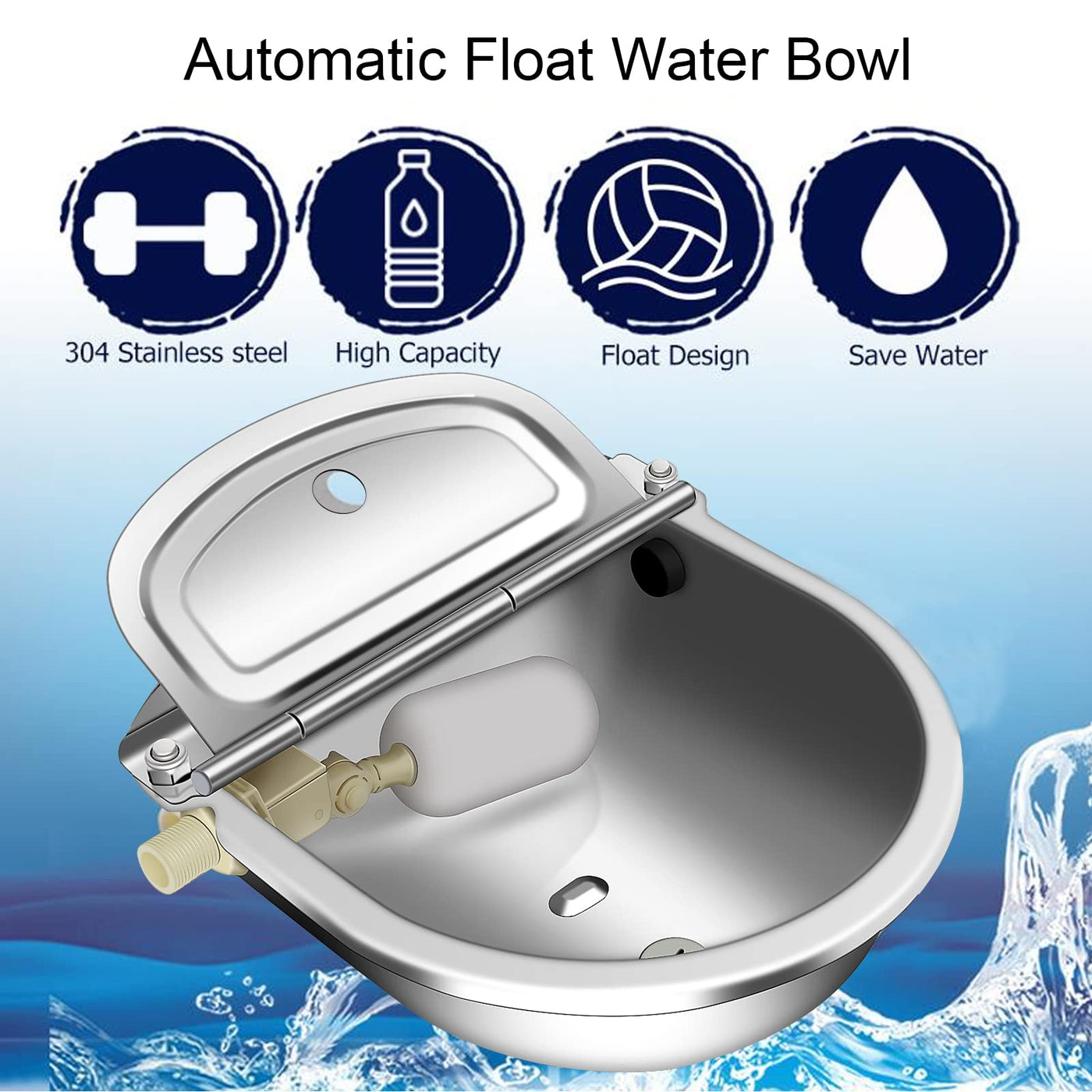 Specification: Color: As the picture Package Weight: 1524g Waterer Material: 304 Stainless steel Dimensions: 11in*10.23 in*4.72in Application: horses, cattle, hogs, goats, sheep, alpaca, dogs & more. Suitable: Can be easily installed at any height using bolts, bolts are not included. Feature: 1.The use of float water level floating principle control the inlet and outlet water switch, to achieve a constant water level effect, keeps enough water and always clean water. 2.Stainless steel baffle,can prevent Float Water Valve from being bitten. 3.There is an automatic drain hole below, which can automatically discharge water. 4.There are two round fixing holes at the back for easy reinforcement. 5.The connection is very tight and will not leak water. 6.The edge is polished smoothly,Effectively prevent metal drinking bowl cut snout to avoid trauma infection. Package Included: 1 * Stainless Steel Automatic Waterer Bowl 1 * Hose 2 * Float Water Valve 2 * Connector