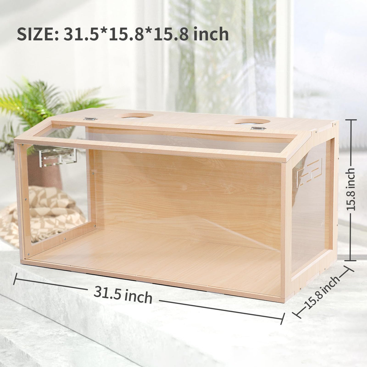 31.5 Inch Wooden Hamster Cage, Large Habitat, Openable Top, Transparent Acrylic For Interior View, Ventilated, Easy To Clean, For Syrian Hamster, Dwarf Hamster, Gerbil, Other Small Pet Animals