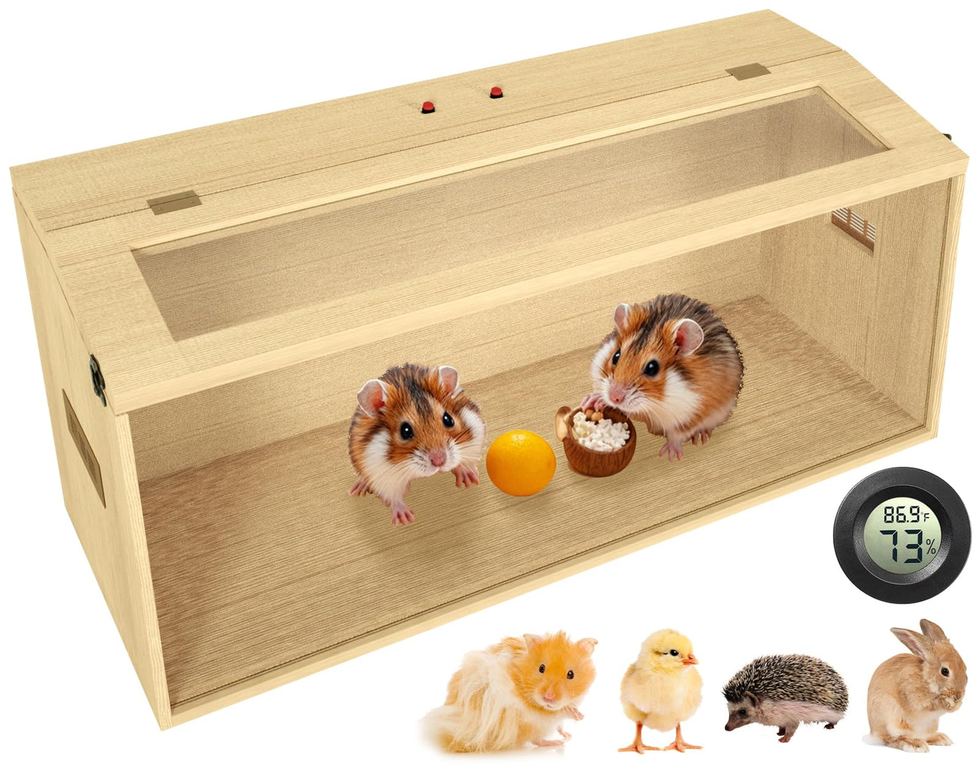 32'' Hamster Habitat Enclosure, Top Opening Lockable Roof Door, Gerbil Dwarf Hamster Cage With Hygrometer, Chewproof Syrian Hams