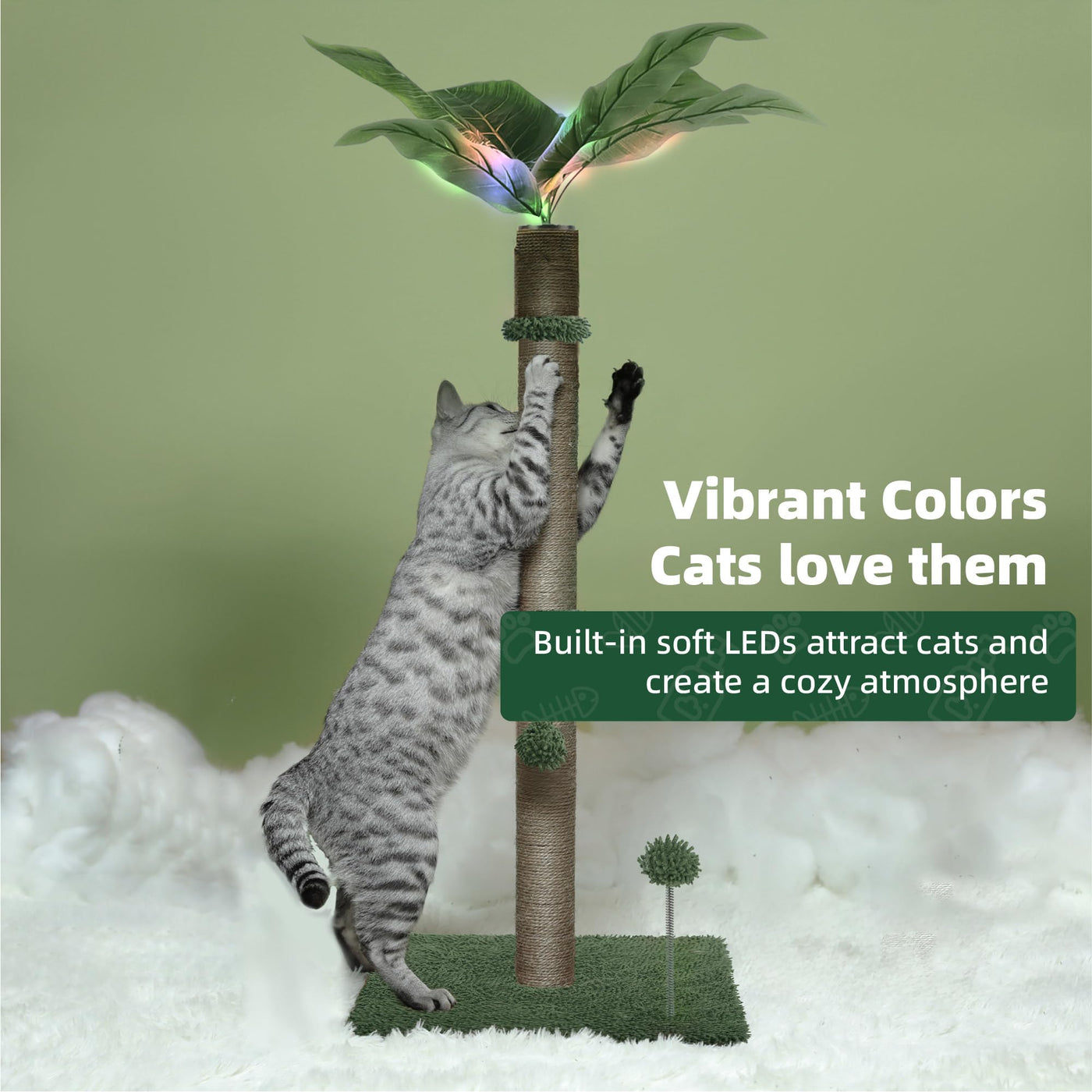 This 34'' Tall Palm Cat Tree With A Glowing Top Is The Perfect Addition To Any Home With Cats. Equipped With 4 Led Light Settings, It Offers A Fun And Engaging Environment For Your Pets, Day Or Night. The Interactive Design Includes Hanging Spring Balls And A Scratching Post, Encouraging Natural Instincts And Healthy Play. Made From Eco-Friendly Organic Jute, It Helps Maintain Your Cat'S Claws While Protecting Your Furniture. The Stable Base Ensures Durability, And The Soft Fabric Provides A Comfortable And Safe Grip. Easy To Assemble, This Stylish Cat Tree Blends Seamlessly Into Your Home Decor, Making It The Ideal Choice For Both Kittens And Adult Cats.