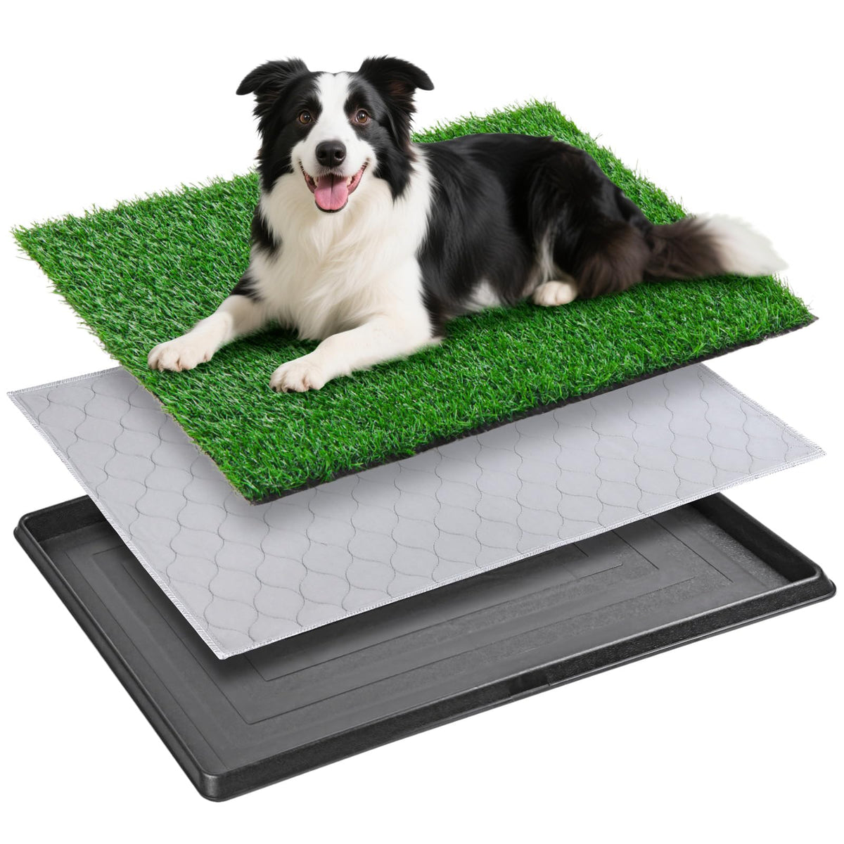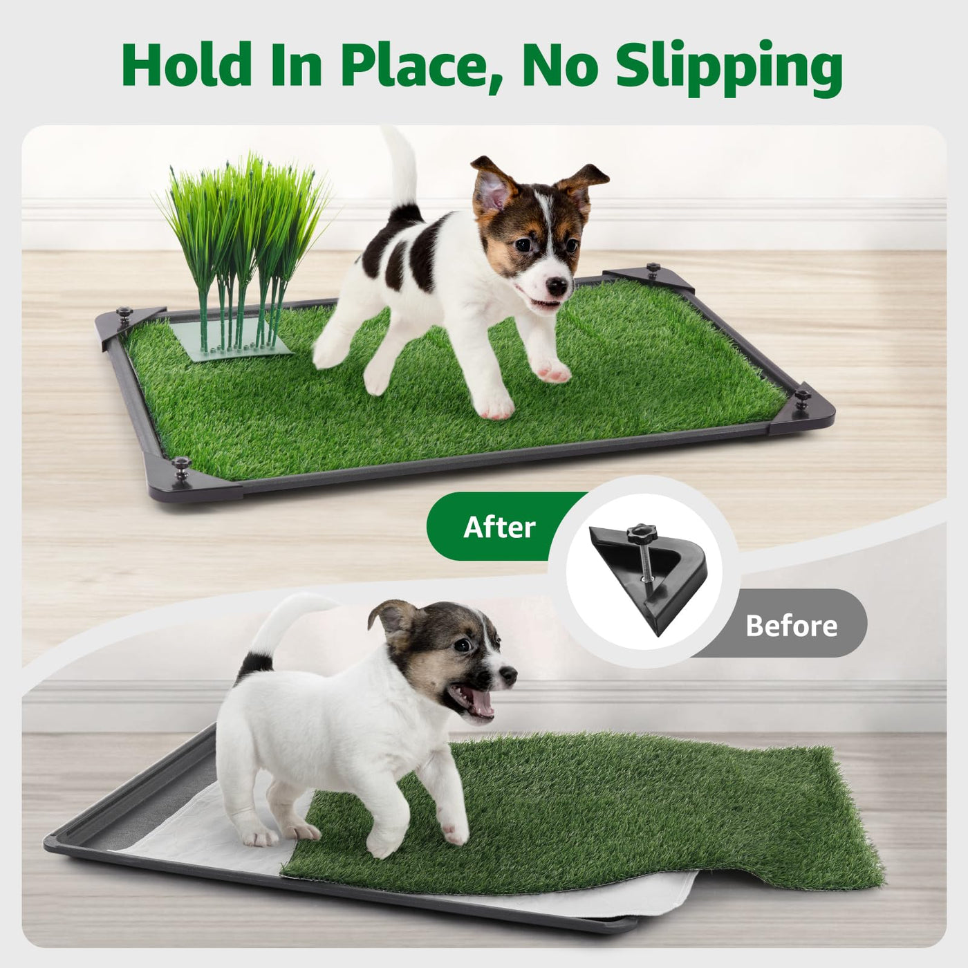 35'X22' Dog Grass Pad With Tray - Artificial Grass Turf For Dogs, Waterproof Non-Slip Washable Pee Pad, Fake Pee Post For Male