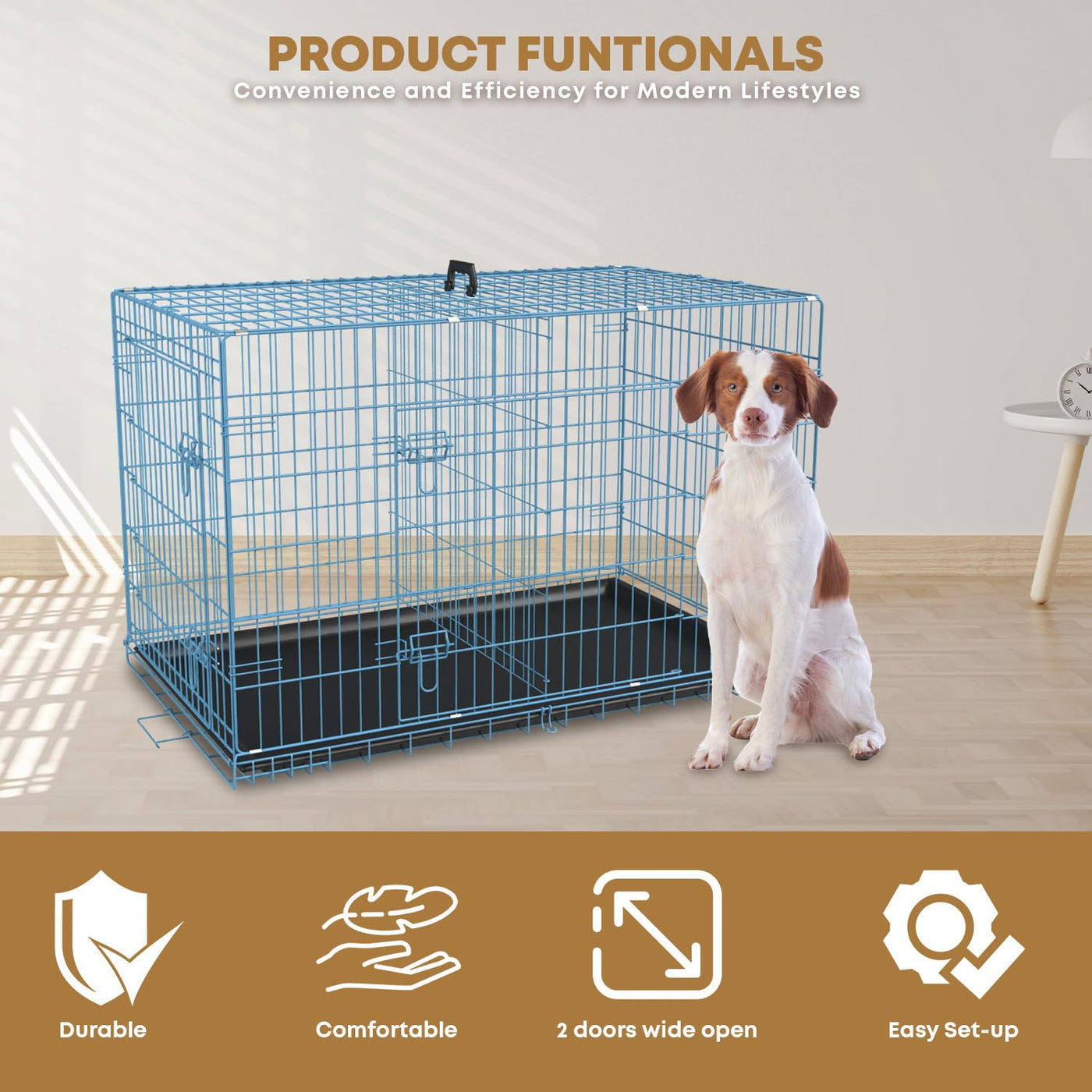 36,42,48 Inch Dog Crate For Large Dogs Dog Cage Dog Kennel Pet Crate Folding Metal Pet Cage Double Door Leak-Proof Plastic Tray