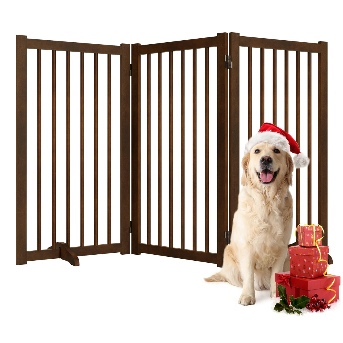 36 H Freestanding Pet Gate, Solid Wood Foldable Dog Gate with Support Feet, Wooden Tall Dog Gate for Doorway, Stairs & Indoor Us