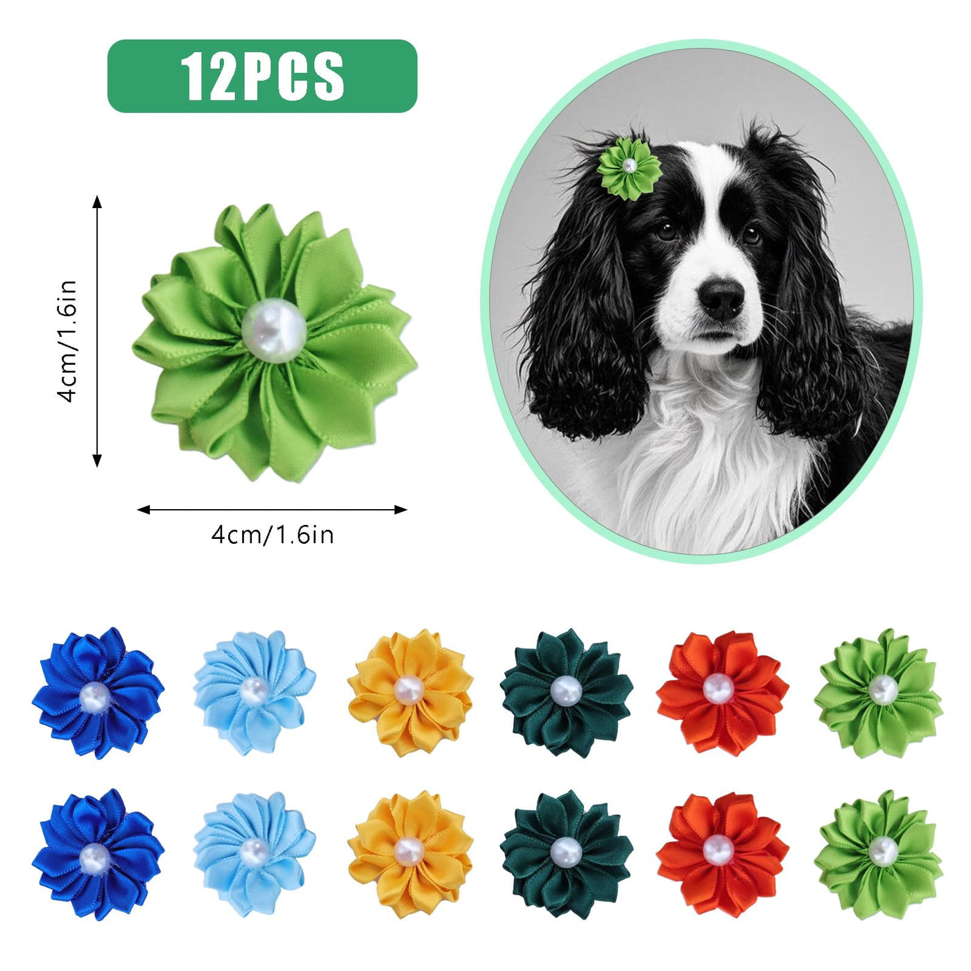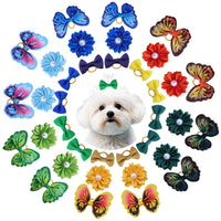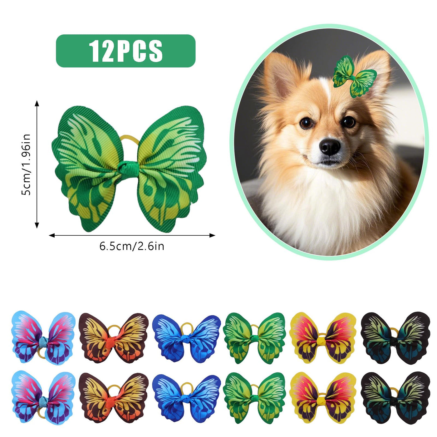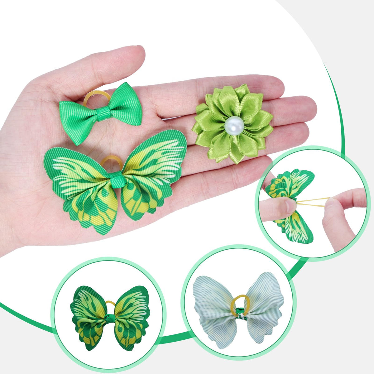 36 Pcs Green Small Dog Hair Bows Cute Puppy Bowknots Accessories With Rubber Band Flower Pearls Butterfly Elastic Top Knot Cat R