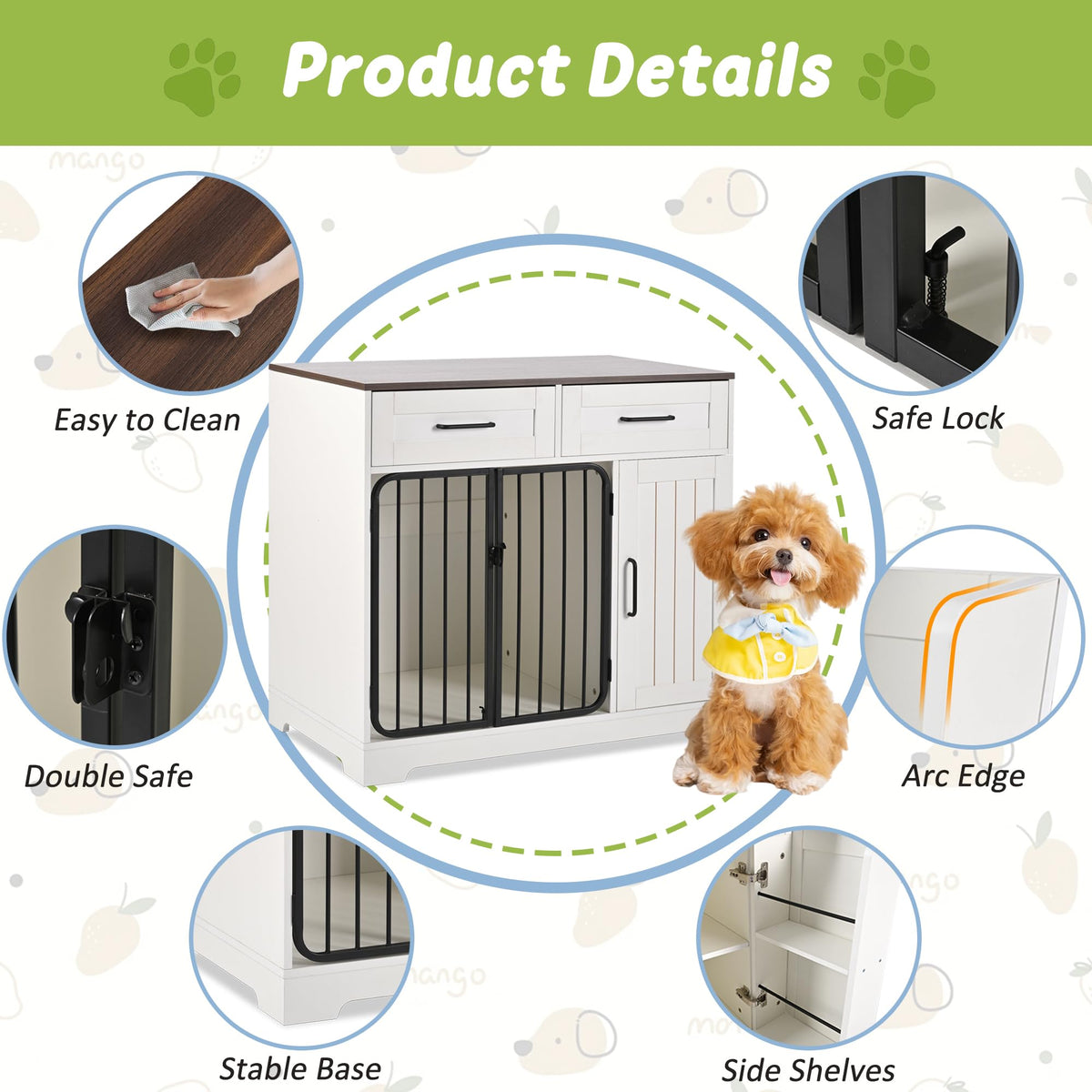 Product Description: Dog Crate Furniture That Doubles as a Home D cor Masterpiece: Transform your space with EQEYs 37.4 Dog Crate Furniture, a furniture style dog crate that effortlessly masquerades as a modern console table or bookshelf. Its sleek iron-mesh panels and espresso oak finish add minimalist flair, while the hidden dog crate furniture with storage (two drawers + lockable cabinet) declutters leashes, toys, and treats. Perfect for design-savvy pet parents who refuse to compromise on style or pet comfort. Small Dog Crate Furniture, Big on Personality: Dont let size fool you-this dog crate furniture for medium dogs packs a punch with customizable dividers for growing pups and a scratch-resistant base that doubles as a chic nightstand. The dog crate that looks like furniture blends into studios, lofts, or cozy corners, proving compact spaces can still be pet-friendly and Pinterest-worthy. Safety Meets Spa-Like Luxury: Your pets comfort is non-negotiable. The sturdy MDF frame features rounded, chew-proof edges, while the elevated design promotes airflow for cool naps. Add the plush, machine-washable cushion (included!), and your furry VIP gets a safe, breathable retreat that feels like a five-star pet suite-no anxiety, just zen.