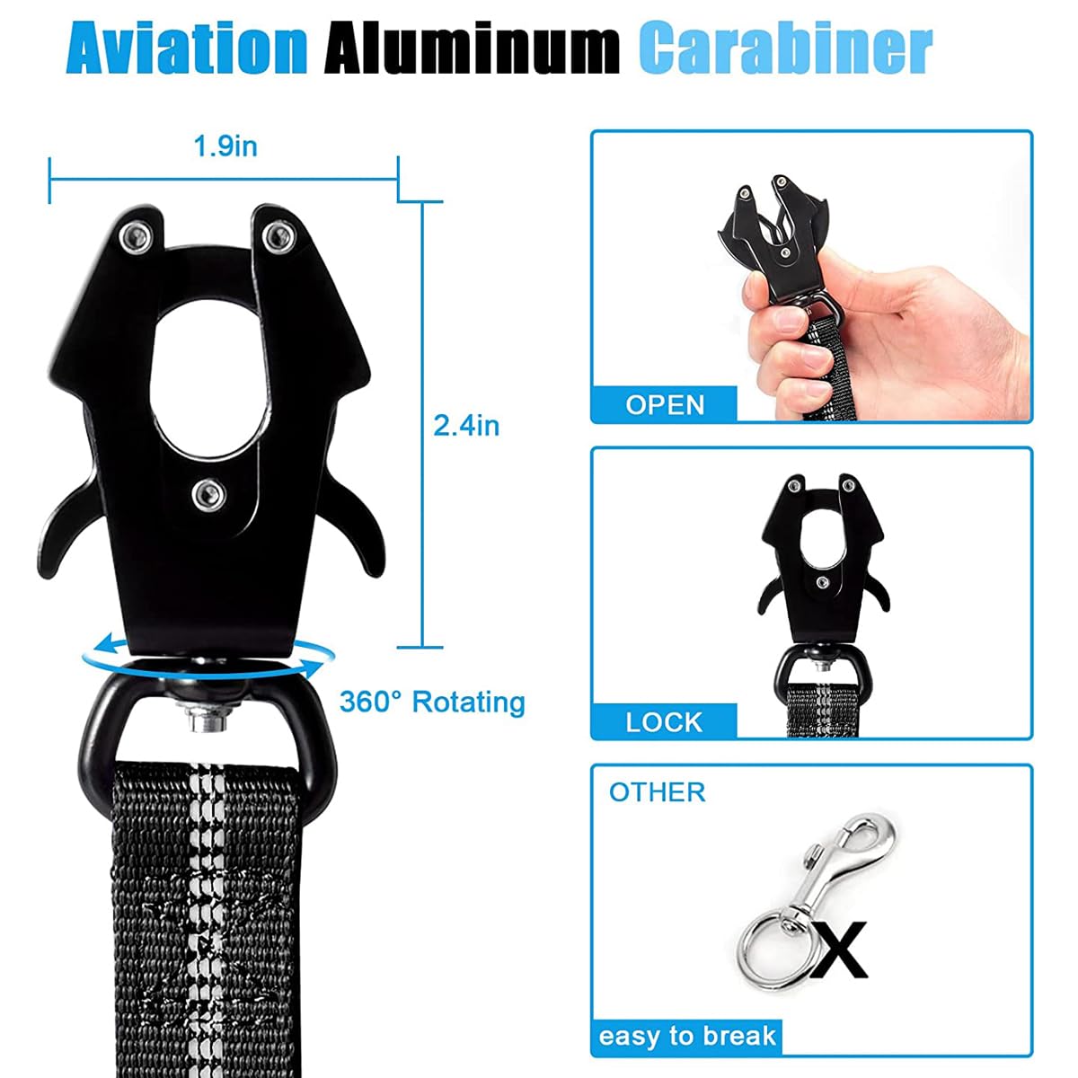 4-6FT Heavy Duty Dog Leash for Large Dogs, Shock Absorbing Bungee Tactical Dog Leash with 2 Padded Handle, Car Seatbelt and Meta