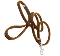 A premium quality leash made of soft genuine leather with nickel plated swivel snap. 3/8" wide and 4' long. Fully stitched design. Snap riveted for extra strength. Most suitable for XSmall breeds and young puppies.