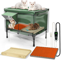 4-In-1Heated Cat House: This Cat Warming House Comes With Cat Box & Elevated Cat Bed Heating Pad & Cat Scratching Bed.Tpu Rain Cover With Waterproof? Windproof & Warmth. It Provides Double Protection. This Heated Outdoor Cat House Has 2 Ground Stakes And Tpu Cat House Cover. Sisal Cat Scratching Bed Is Scratch-Resistant, Wear-Resistant, Non-Toxic And Environmentally Friendly. It Can Also Be Taken Out And Used Separately.