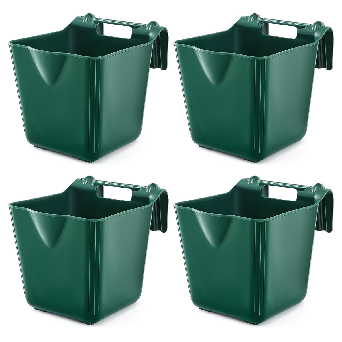 4 Pack 15 Quart Horse Feeders for Stall Hook Over Hanging Fence Hay Feeder Mountable Livestock Plastic Feed Bucket for Farm Stal