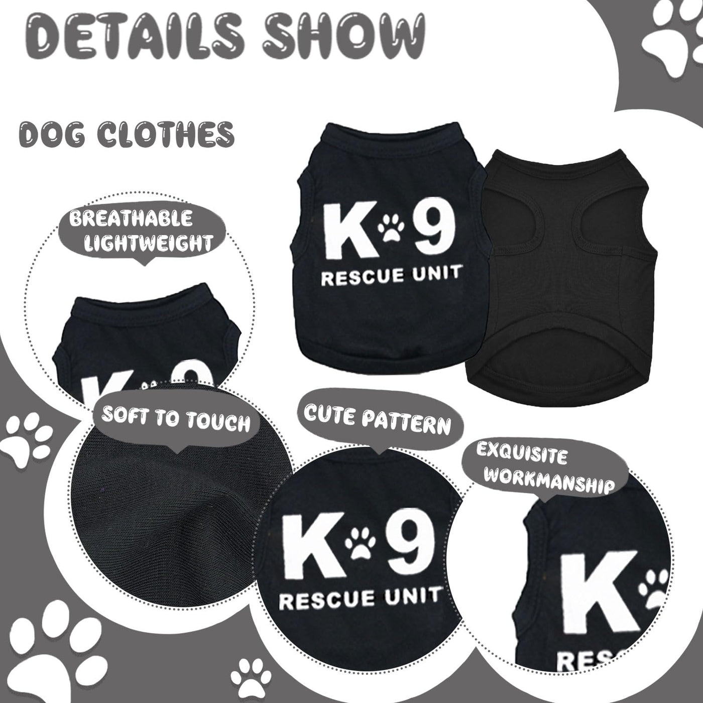 4 Pack Chihuahua Clothes Dog Clothes For Small Dog Black Puppy Clothes Soft K9 Security Pattern Dog Shirt Summer Autumn Pet Clot