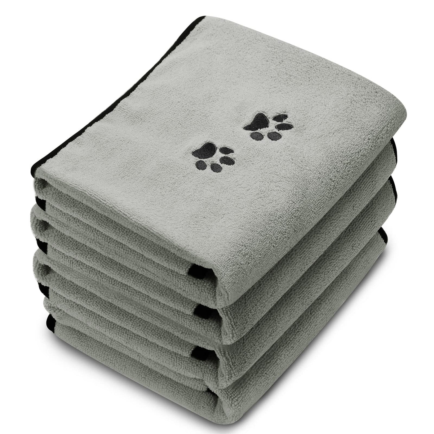Tegeme 4 Pack Microfiber Dog Towels - Soft, Absorbent Pet Bath Towel for Dogs & Cats, Gray, 27.5 x 55 Inch, Embroidered Paw
