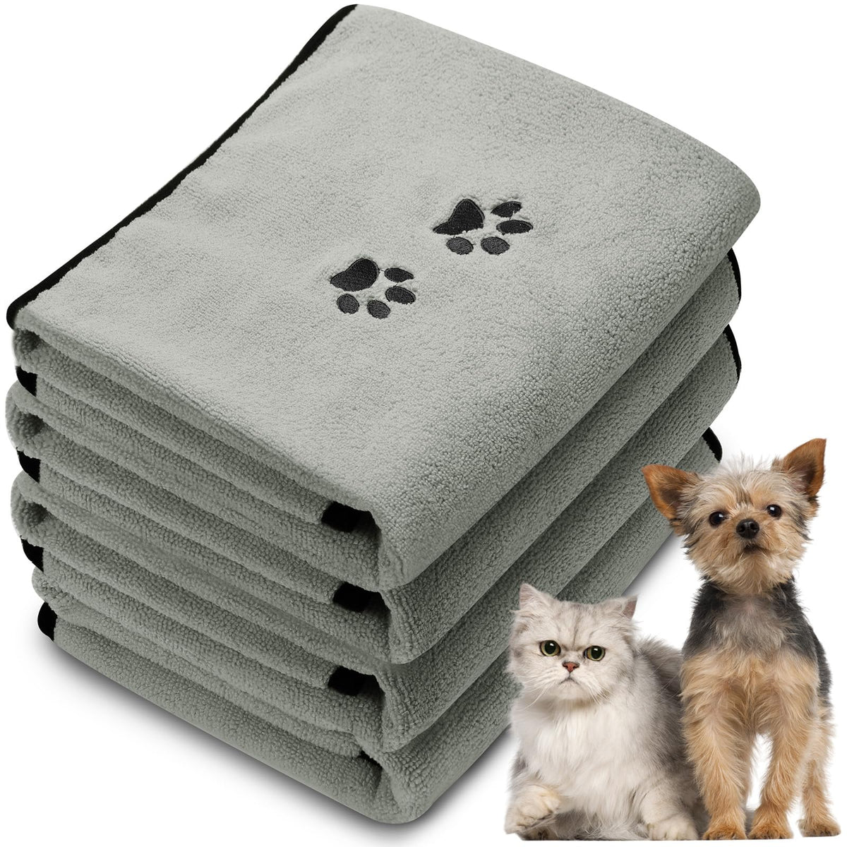 Pack of Four: Each purchase includes four stylish gray dog towels, providing sufficient quantity for daily use and replacements.