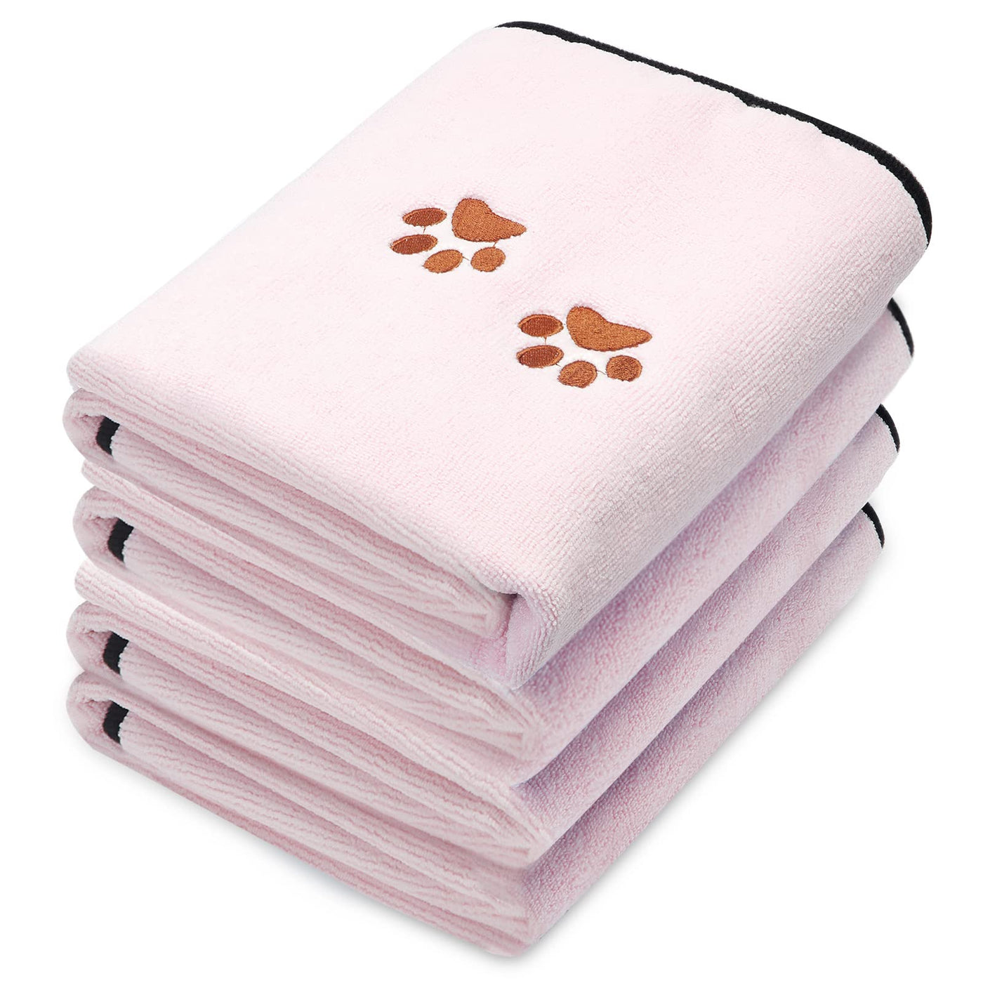 4 Pack Dog Towels For Drying Dogs Microfiber Dog Towel Soft Absorbent Pet Bath Towel Dog Drying Grooming Towel With Embroidered Paw For Pet Dogs Cats Bathing And Grooming (Pink, 35 X 20 Inch)